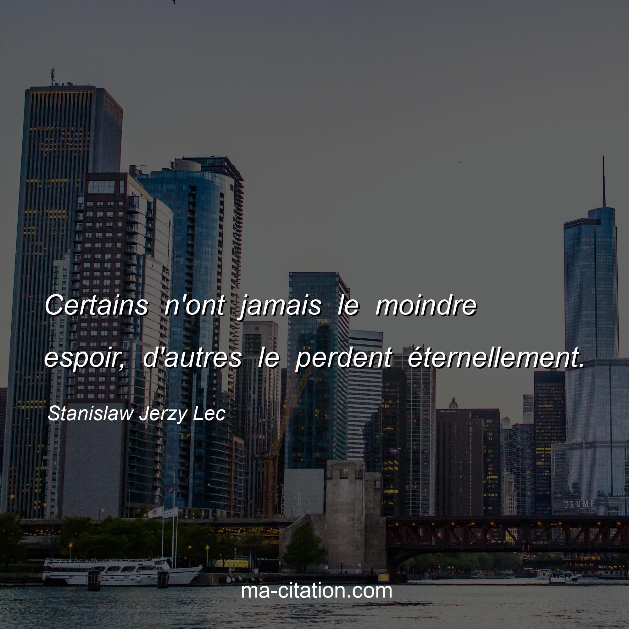 Citation sur la vie de Stanislaw Jerzy Lec :Certains n'ont jamais le moindre espoir, d'autres le perdent éternellement.