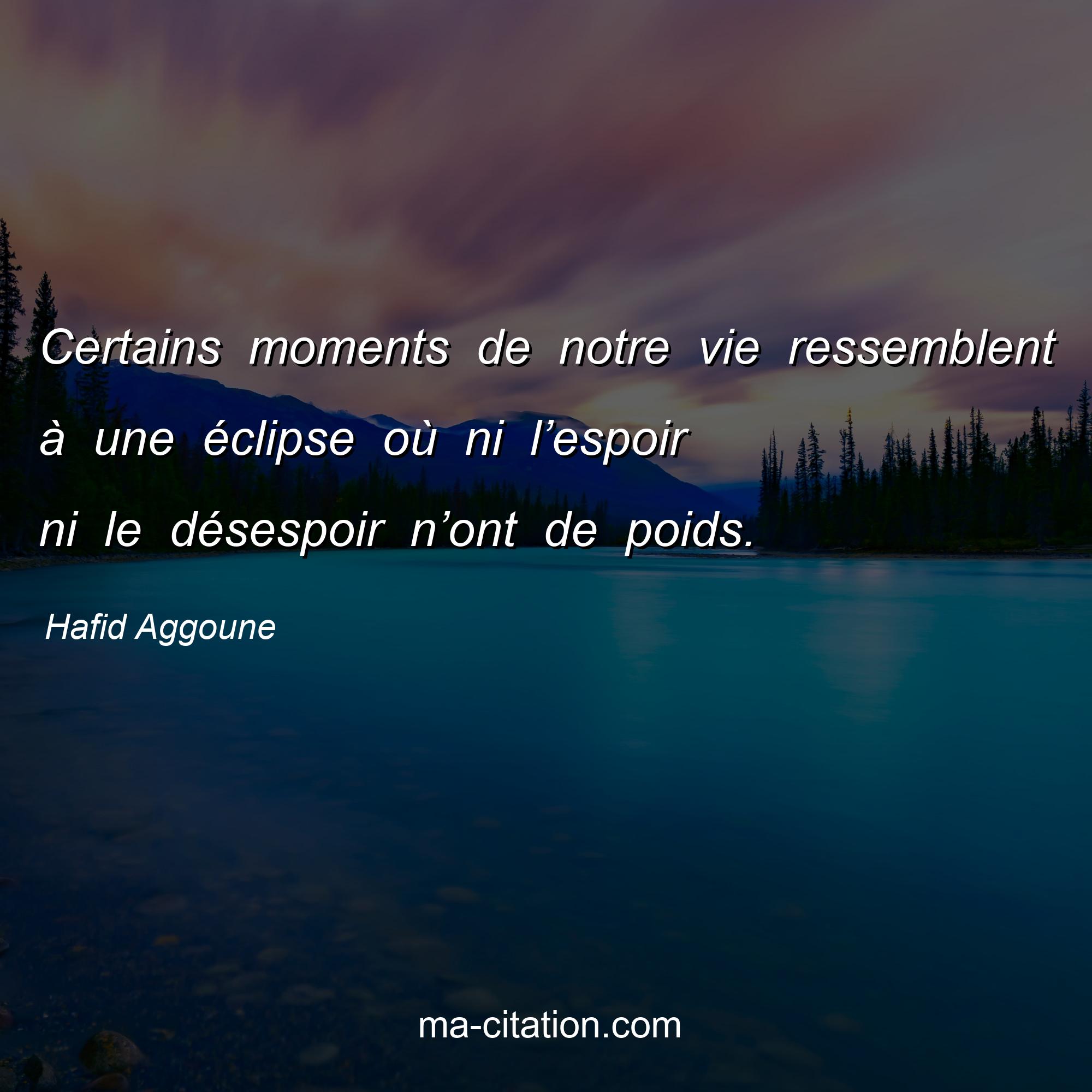Hafid Aggoune est l'auteur de la citation sur la vie "Certains moments de notre vie ressemblent à une éclipse où ni l’espoir ni le désespoir n’ont de poids.".