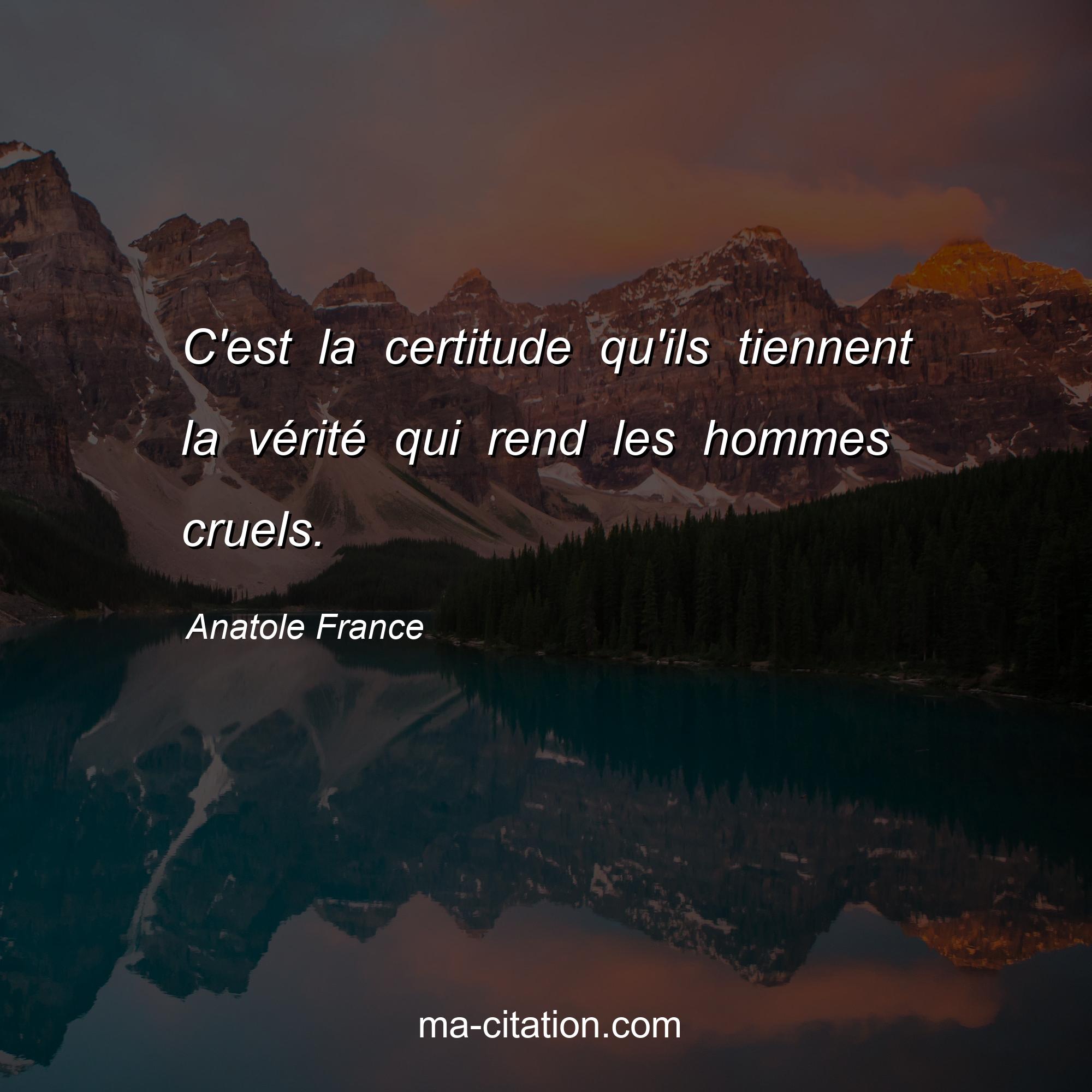 Citation sur la vie d'Anatole France :C'est la certitude qu'ils tiennent la vérité qui rend les hommes cruels.