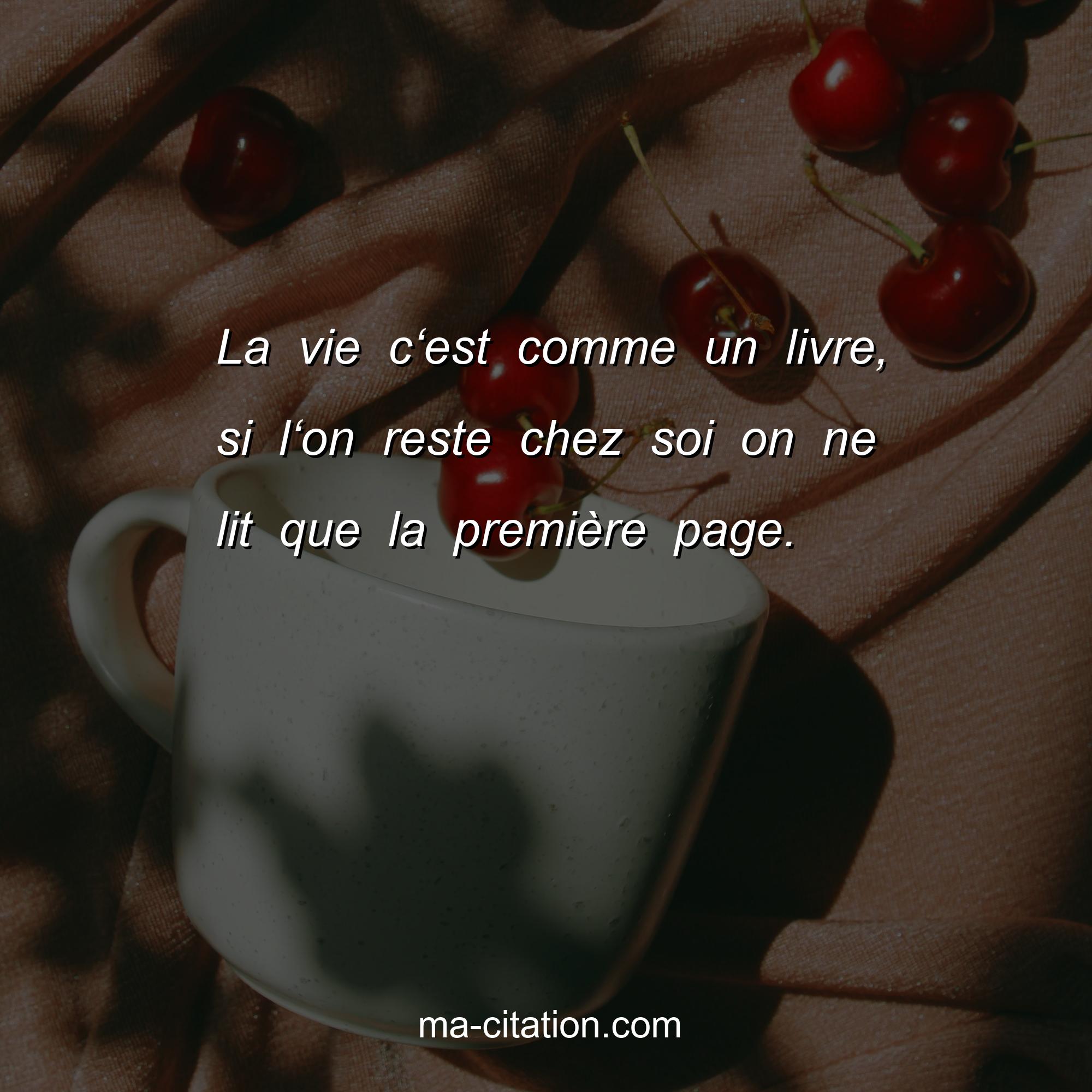 Citation sur la vie :La vie c‘est comme un livre, si l‘on reste chez soi on ne lit que la première page.