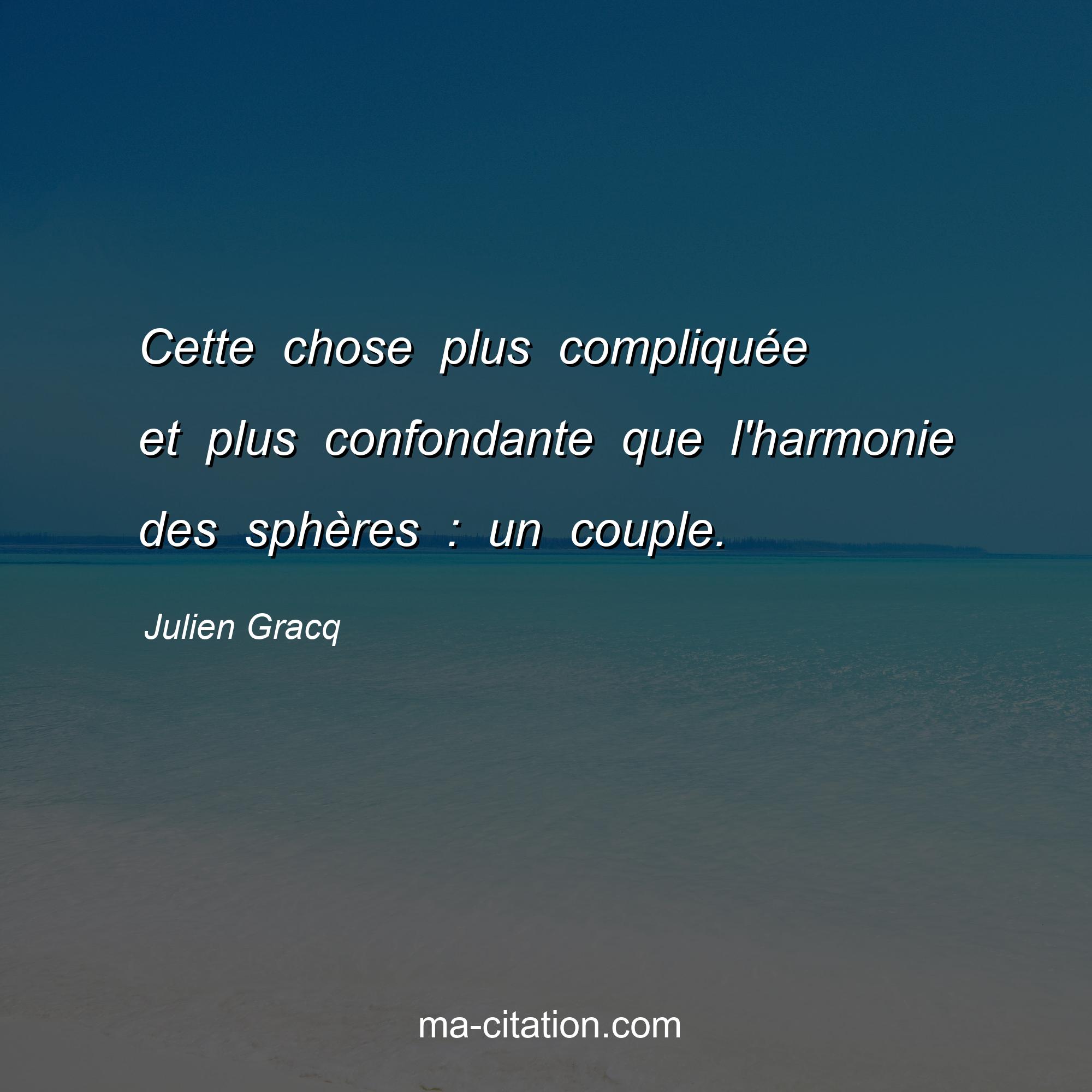 Citation sur la vie de Julien Gracq :Cette chose plus compliquée et plus confondante que l'harmonie des sphères : un couple.
