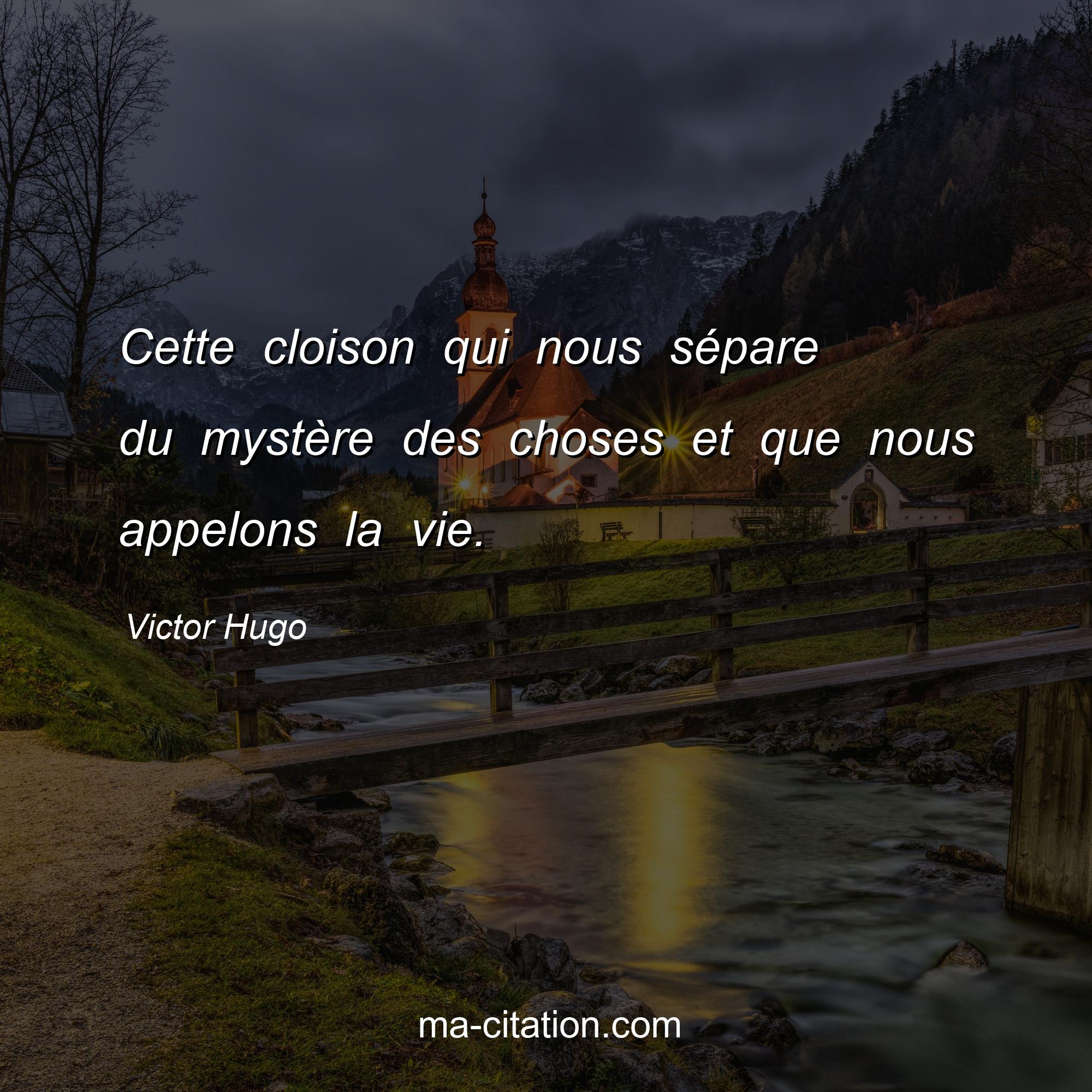 Citation sur la vie de Victor Hugo :Cette cloison qui nous sépare du mystère des choses et que nous appelons la vie.