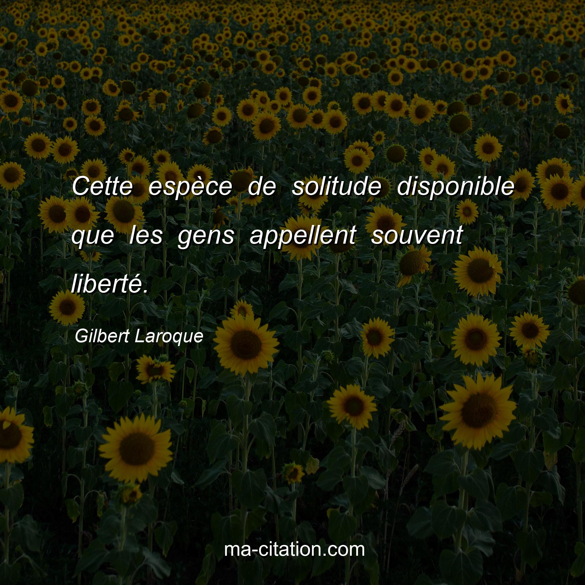 Gilbert Laroque est l'auteur de la citation sur la vie "Cette espèce de solitude disponible que les gens appellent souvent liberté.".