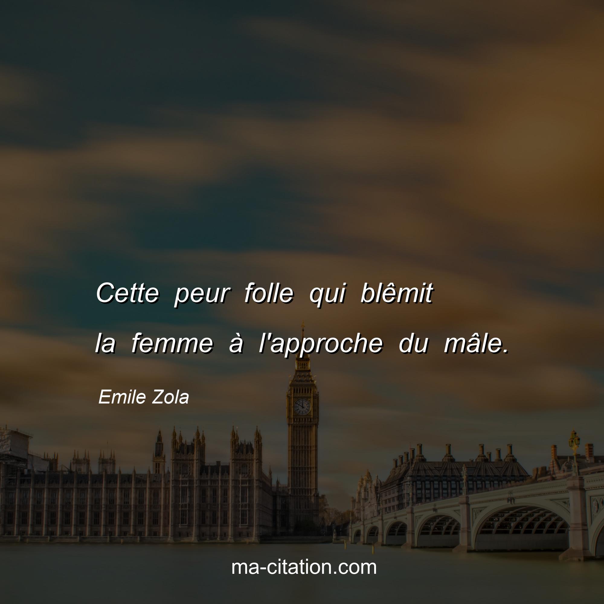 Citation sur la vie d'Emile Zola :Cette peur folle qui blêmit la femme à l'approche du mâle.