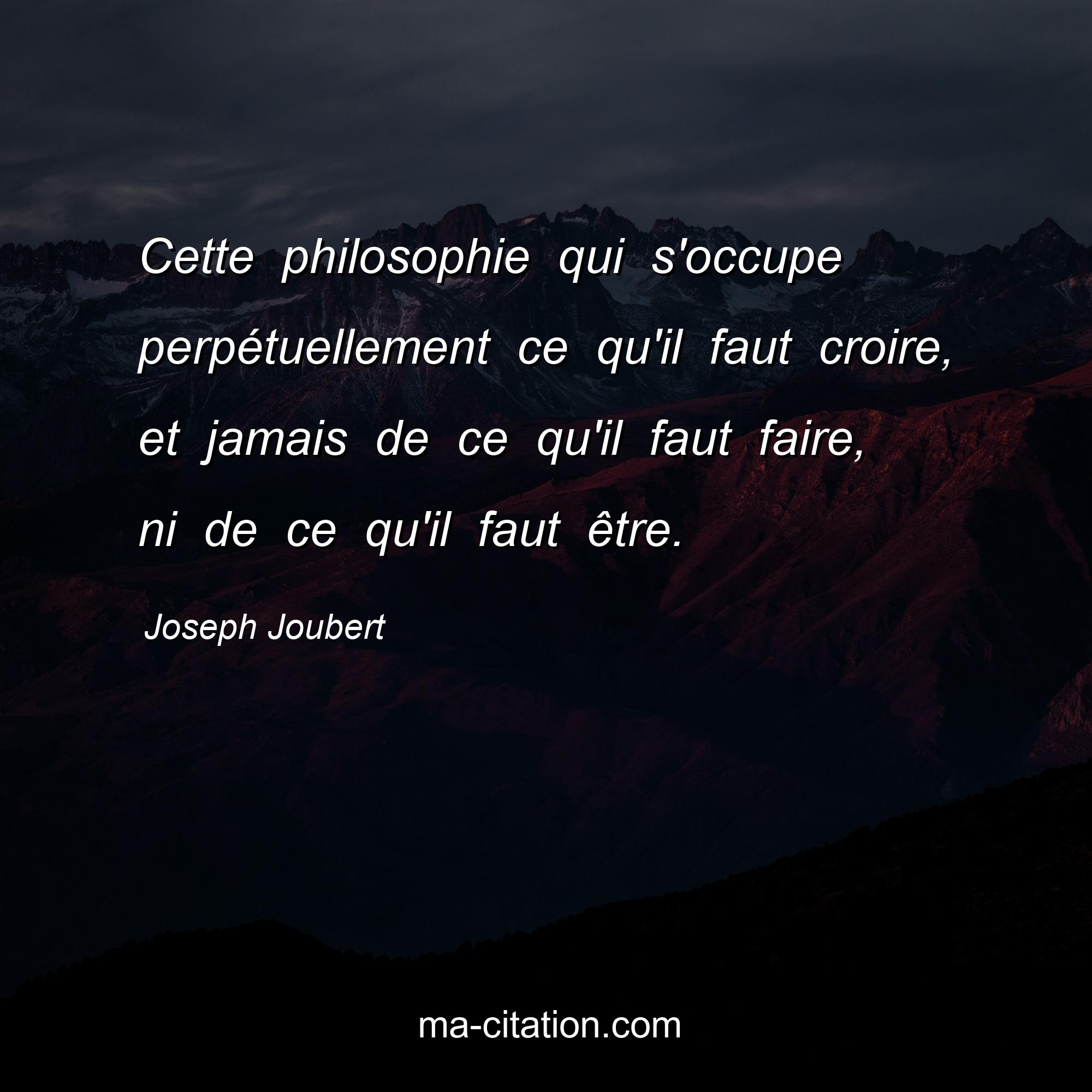 Citation sur la vie de Joseph Joubert :Cette philosophie qui s'occupe perpétuellement ce qu'il faut croire, et jamais de ce qu'il faut faire, ni de ce qu'il faut être.