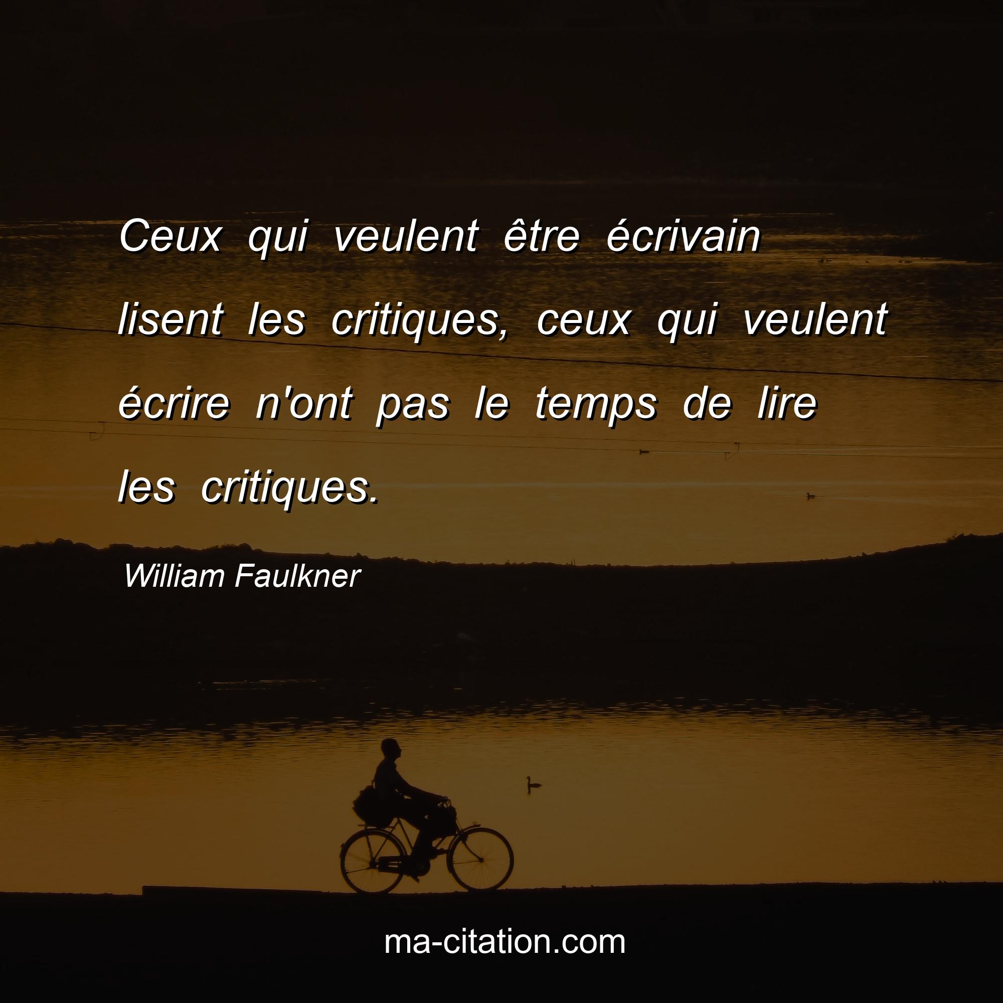 Citation sur la vie de William Faulkner :Ceux qui veulent être écrivain lisent les critiques, ceux qui veulent écrire n'ont pas le temps de lire les critiques.