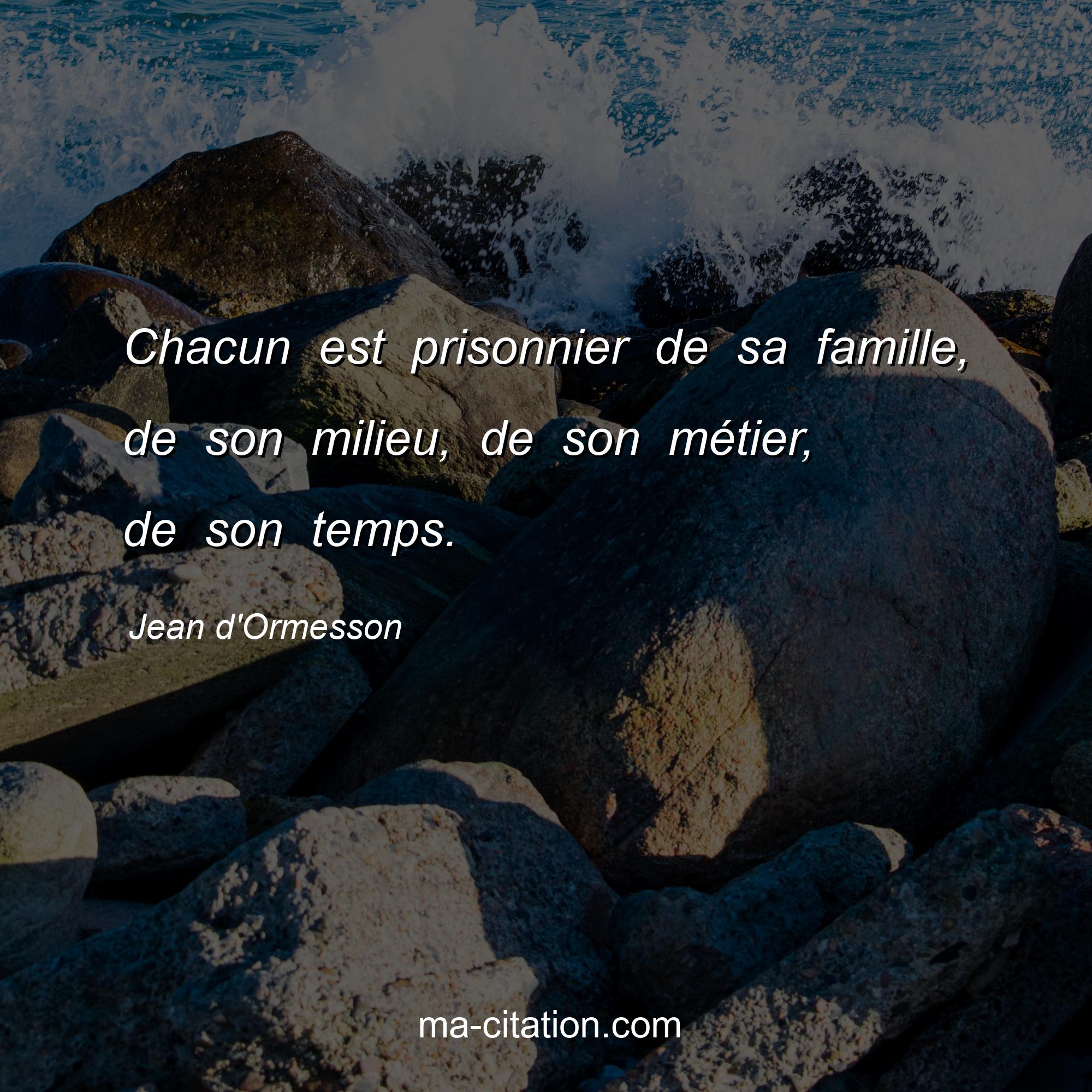 Citation sur la vie de Jean d'Ormesson :Chacun est prisonnier de sa famille, de son milieu, de son métier, de son temps.