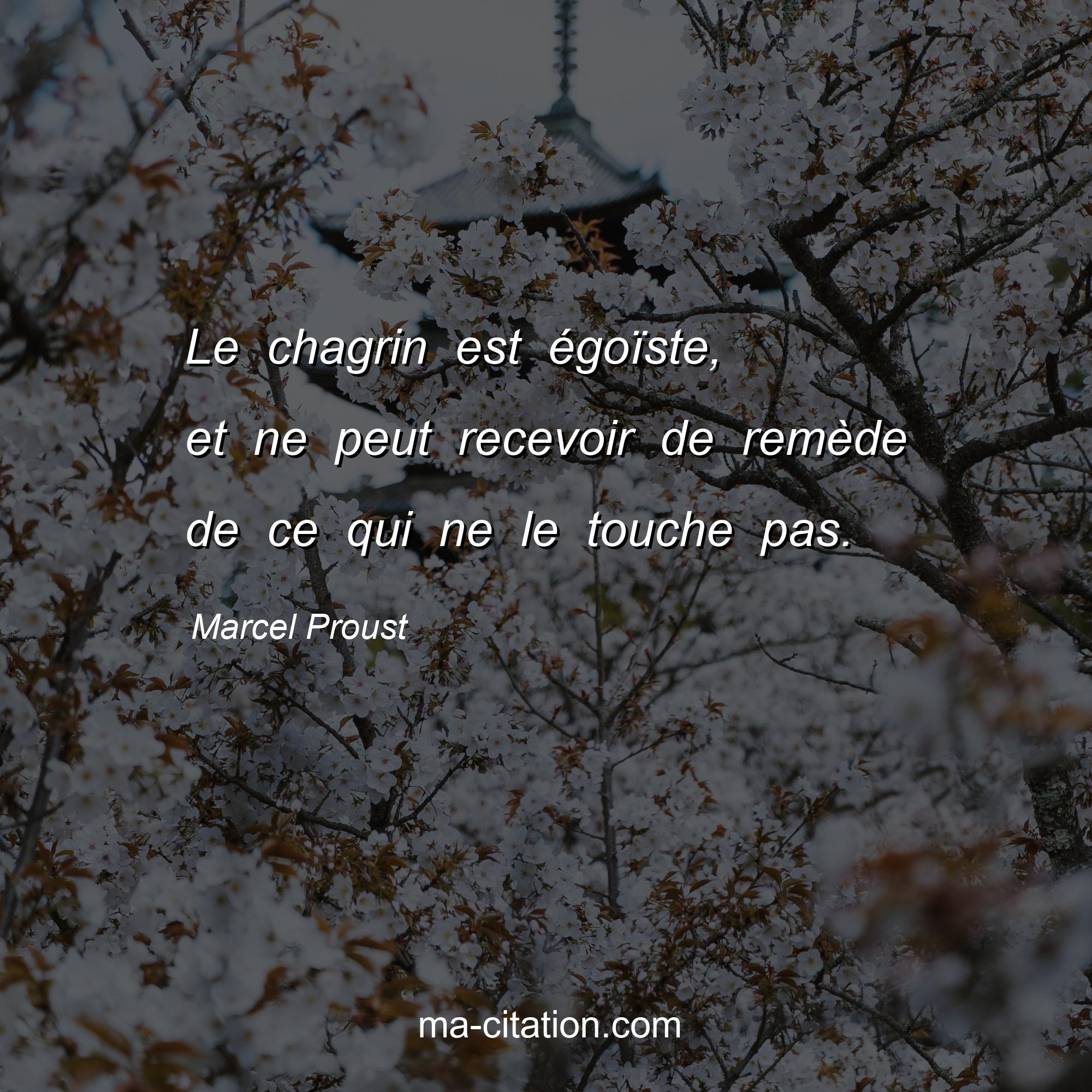 Citation sur la vie de Marcel Proust :Le chagrin est égoïste, et ne peut recevoir de remède de ce qui ne le touche pas.