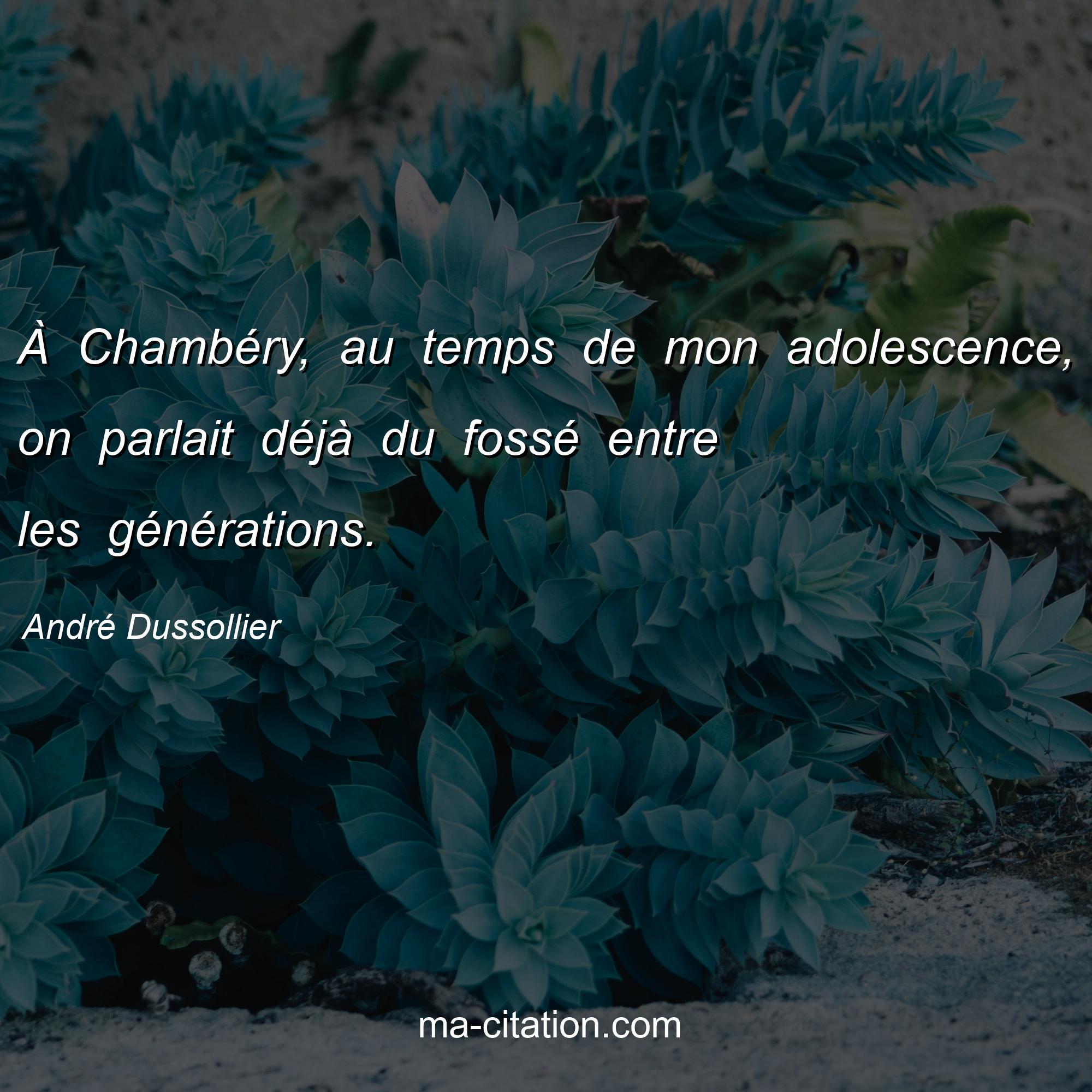 Citation sur la vie d'André Dussollier :À Chambéry, au temps de mon adolescence, on parlait déjà du fossé entre les générations.