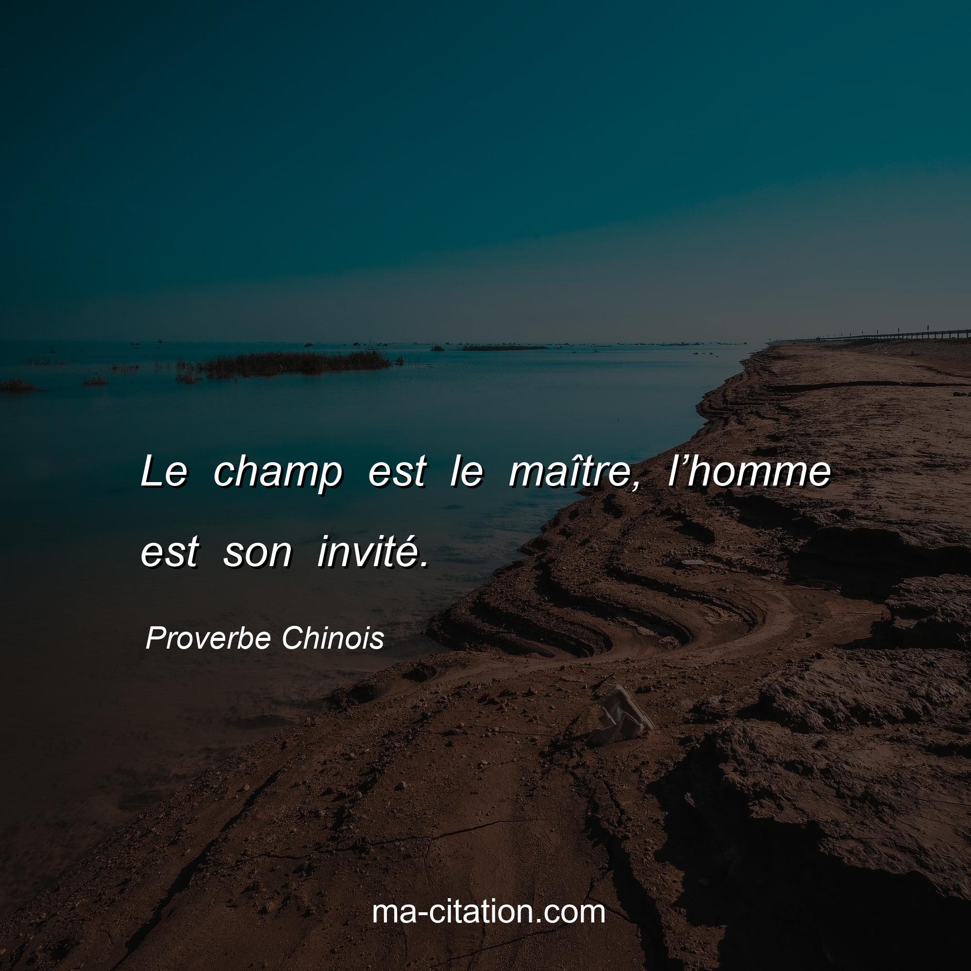 Proverbe Chinois sur la vie :Le champ est le maître, l’homme est son invité.