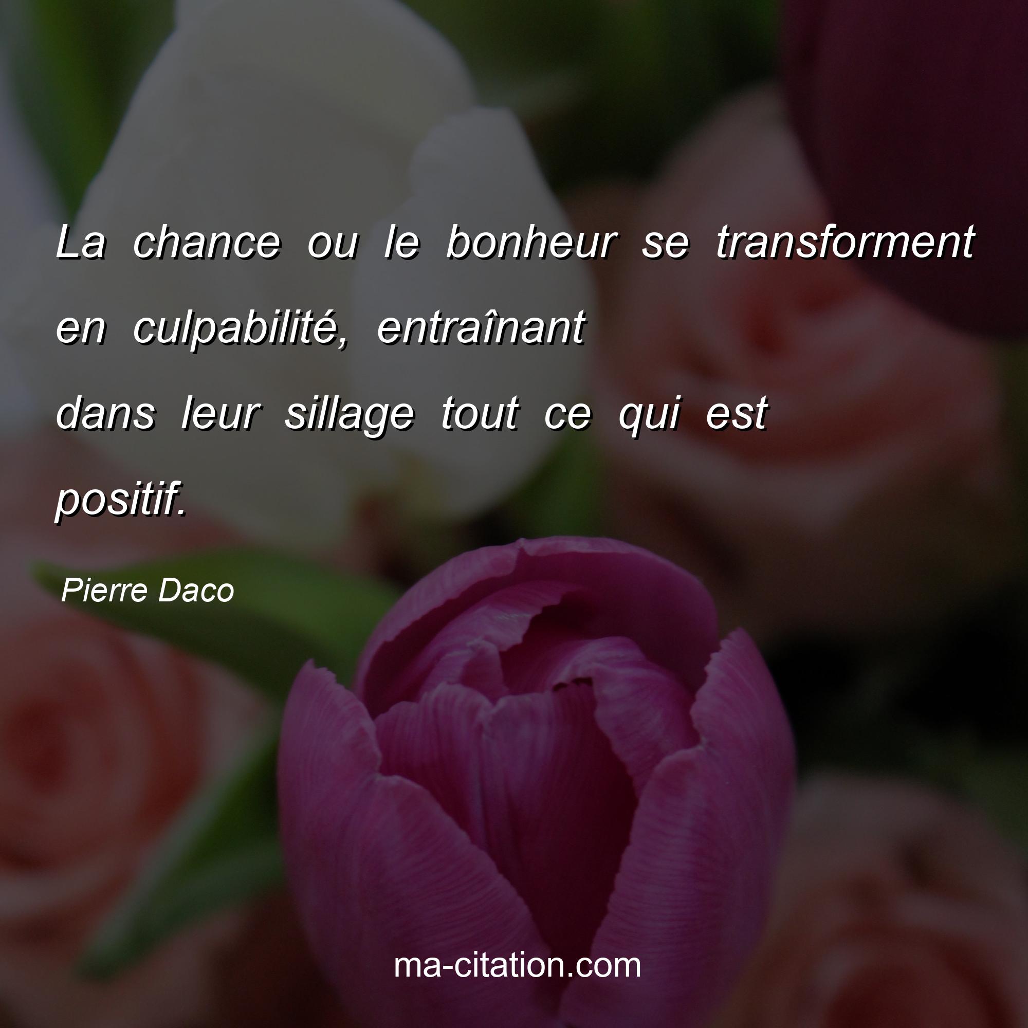 Pierre Daco est l'auteur de la citation sur la vie "La chance ou le bonheur se transforment en culpabilité, entraînant dans leur sillage tout ce qui est positif.".