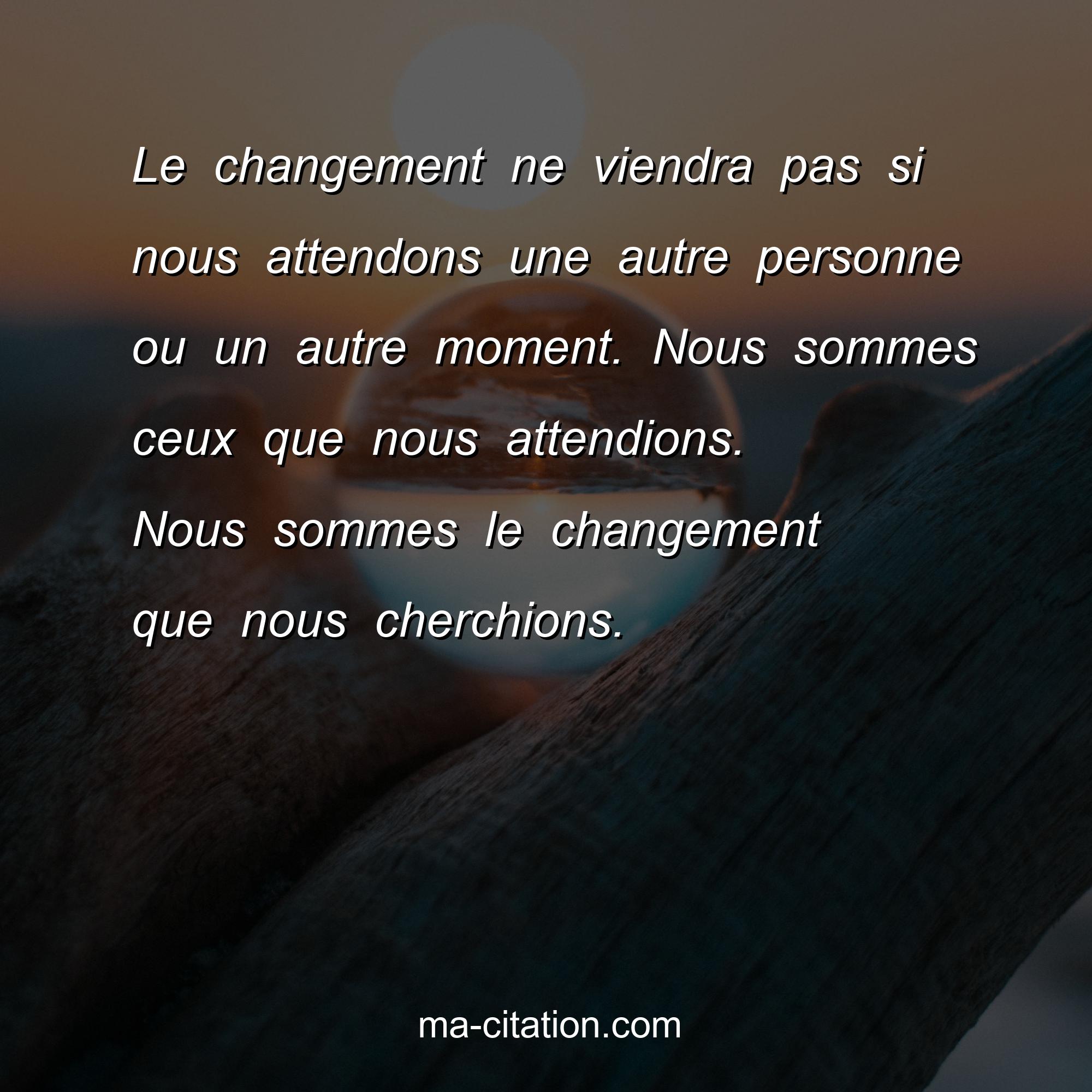Le changement ne viendra pas si nous attendons une autre personne ou un autre moment. Nous sommes ceux que nous attendions. Nous sommes le changement que nous cherchions.