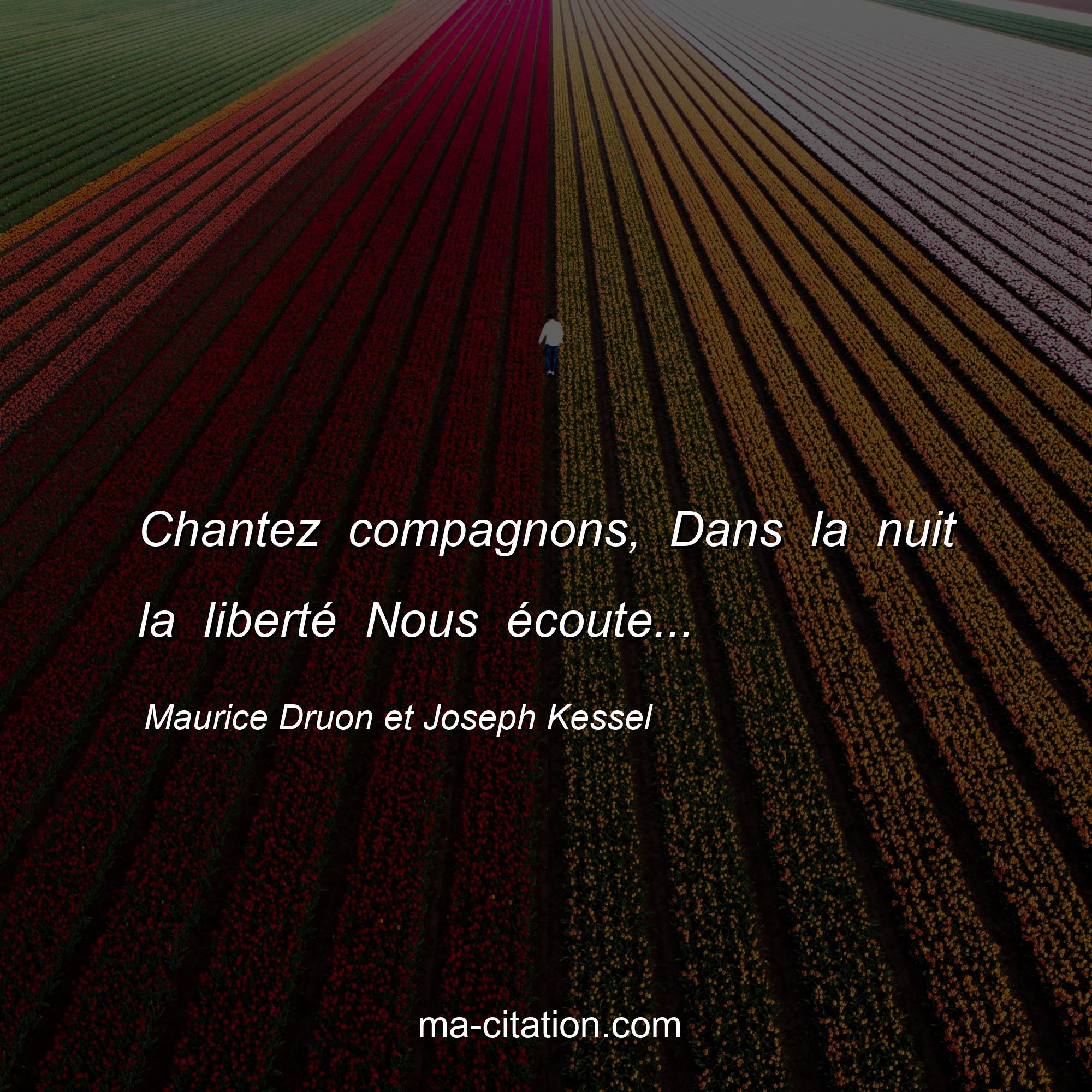 Maurice Druon et Joseph Kessel est l'auteur de la citation sur la vie "Chantez compagnons, Dans la nuit la liberté Nous écoute...".