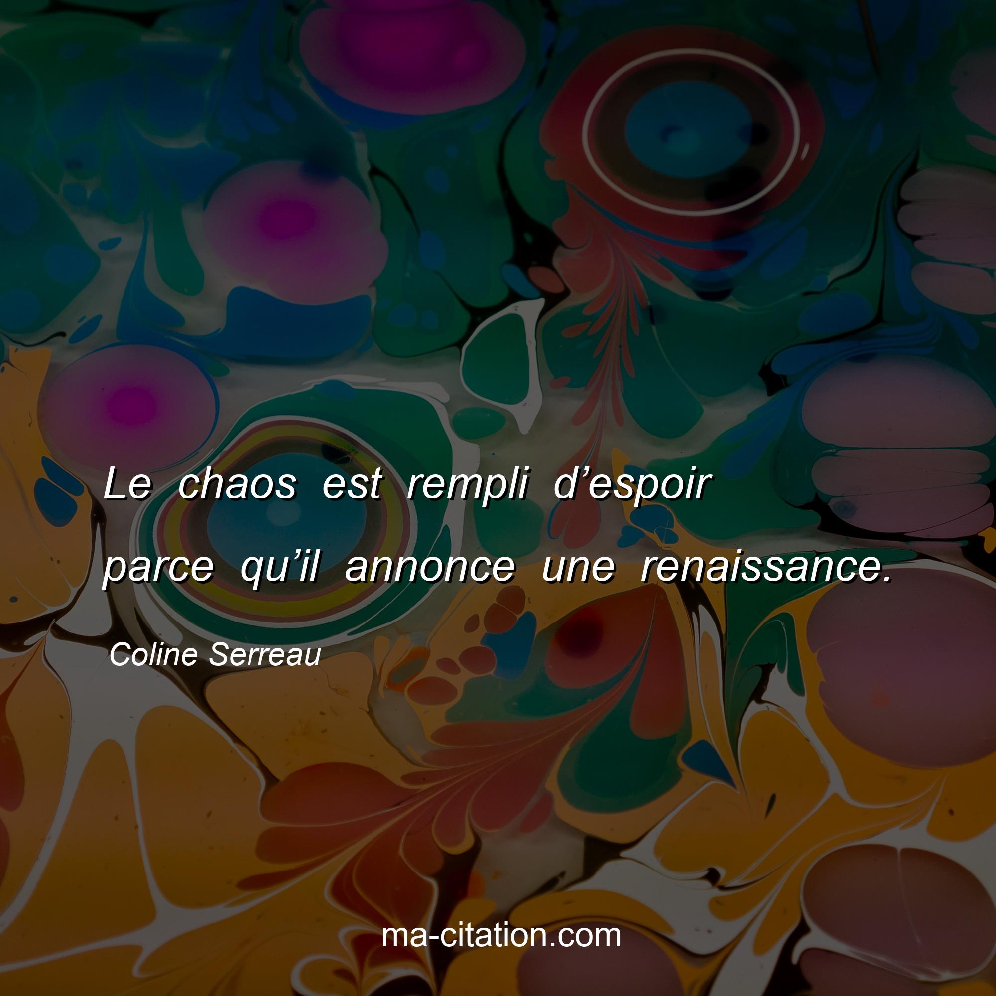 Citation sur la vie de Coline Serreau :Le chaos est rempli d’espoir parce qu’il annonce une renaissance.