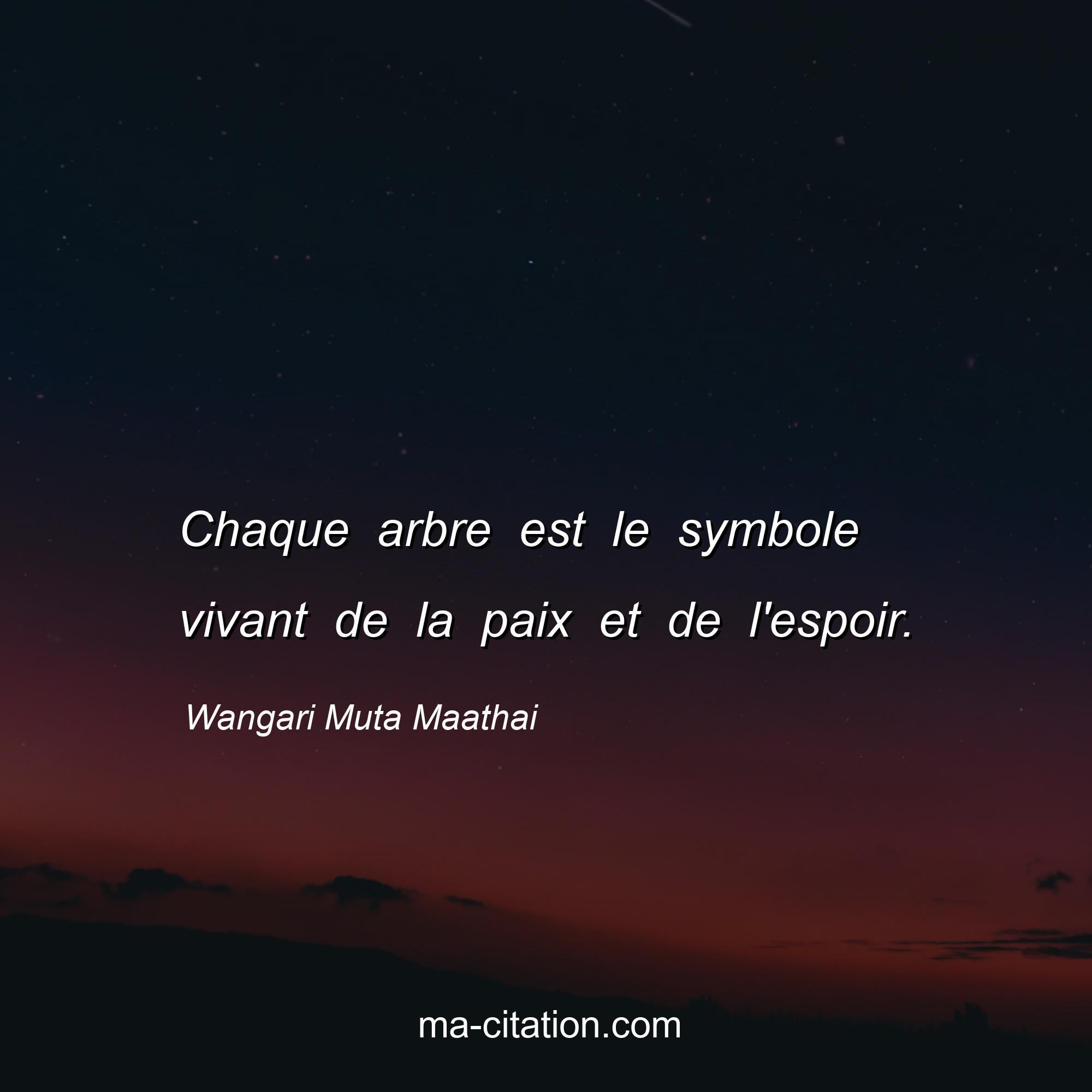 Citation sur la vie de Wangari Muta Maathai :Chaque arbre est le symbole vivant de la paix et de l'espoir.
