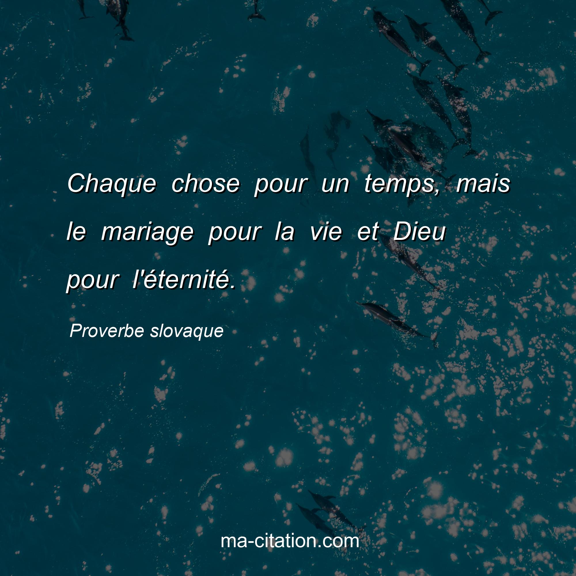 Proverbe slovaque sur la vie :Chaque chose pour un temps, mais le mariage pour la vie et Dieu pour l'éternité.
