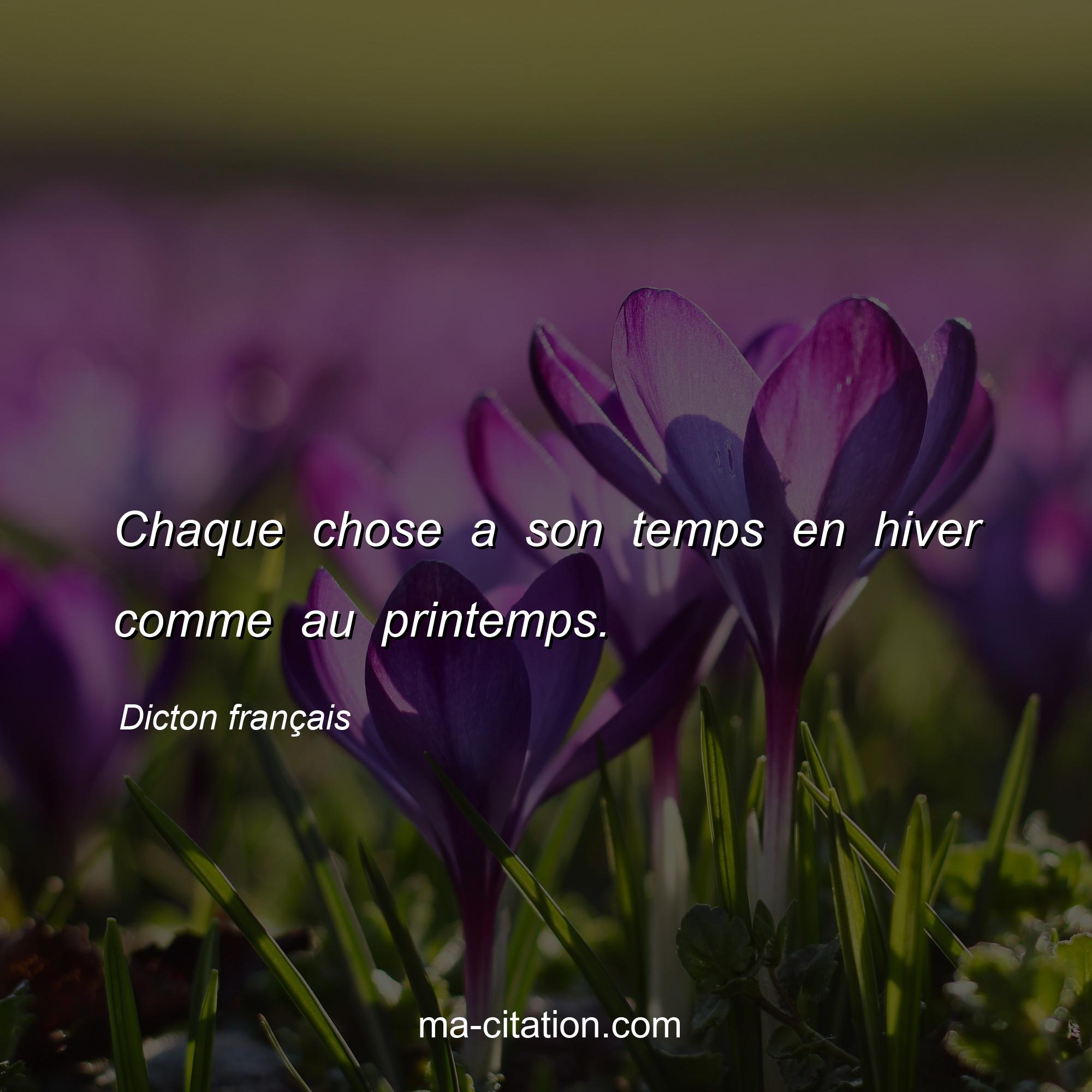 Citation sur la vie de Dicton français :Chaque chose a son temps en hiver comme au printemps.