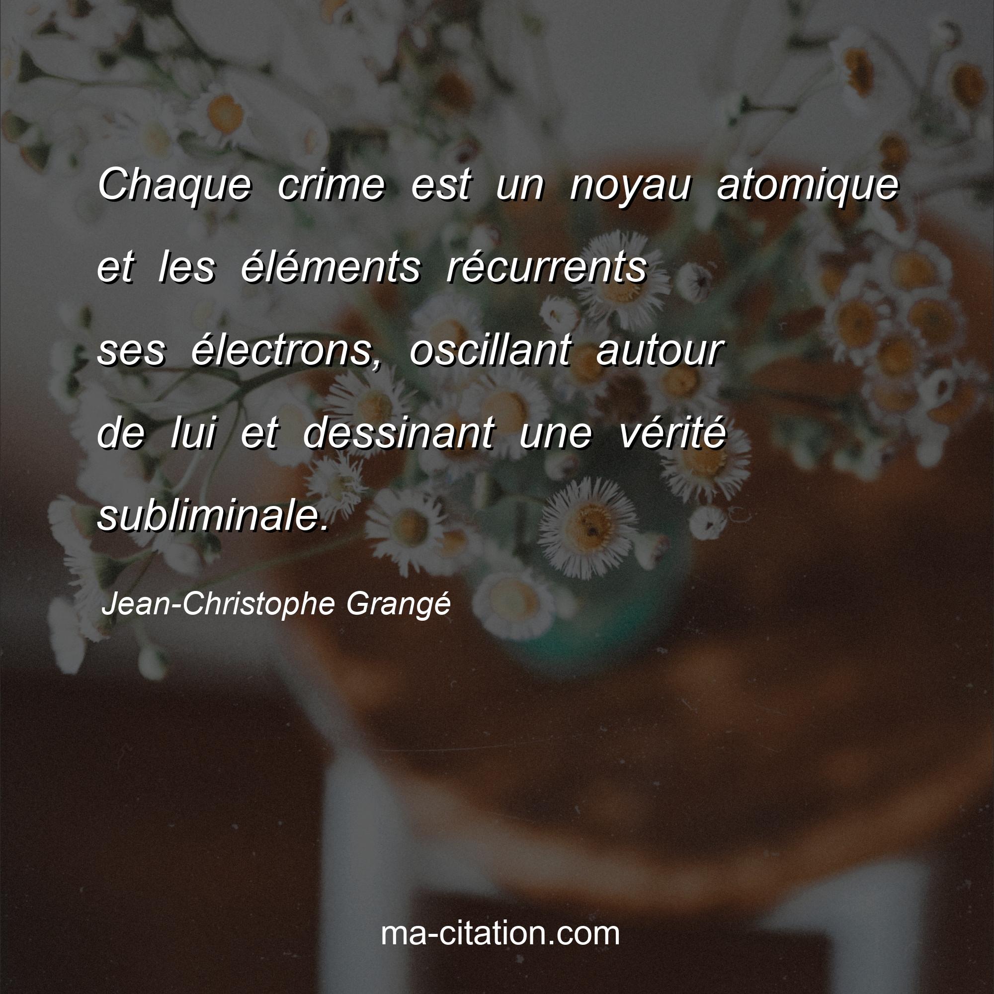 Jean-Christophe Grangé est l'auteur de la citation sur la vie "Chaque crime est un noyau atomique et les éléments récurrents ses électrons, oscillant autour de lui et dessinant une vérité subliminale.".