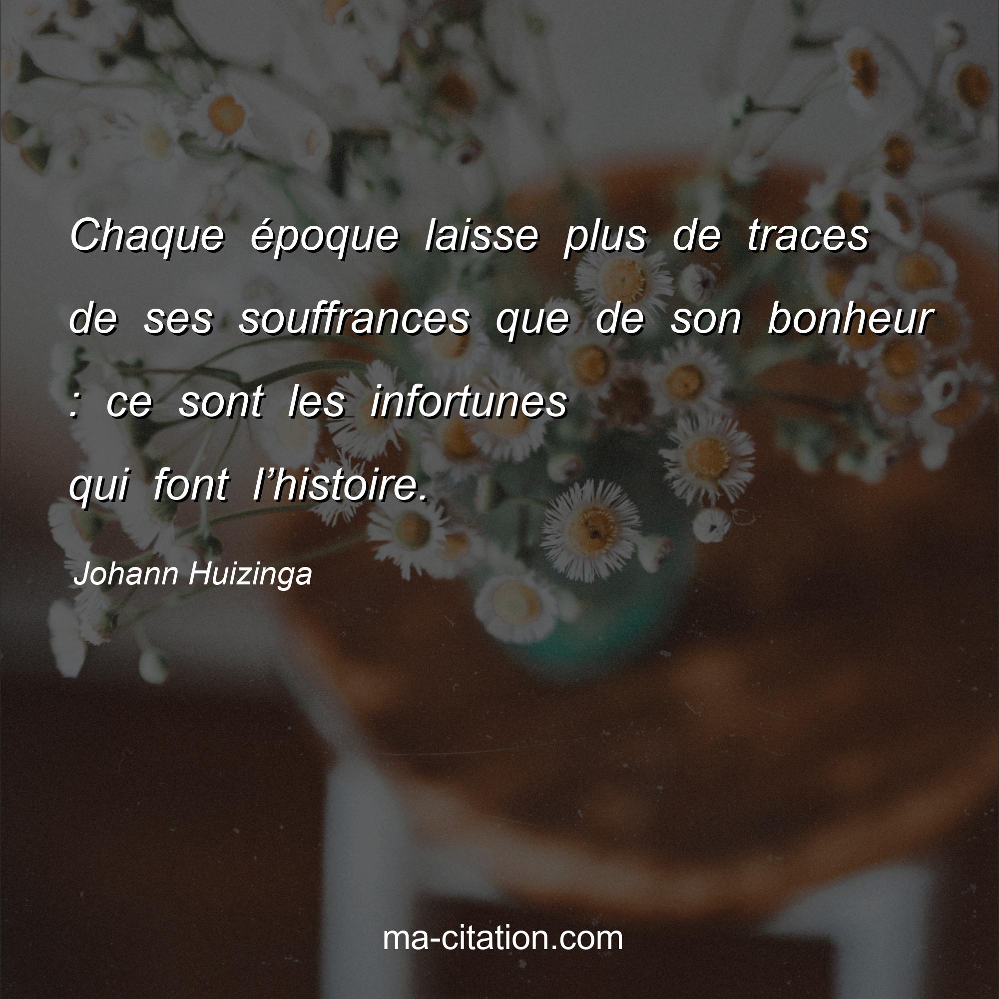 Citation sur la vie de Johann Huizinga :Chaque époque laisse plus de traces de ses souffrances que de son bonheur : ce sont les infortunes qui font l’histoire.