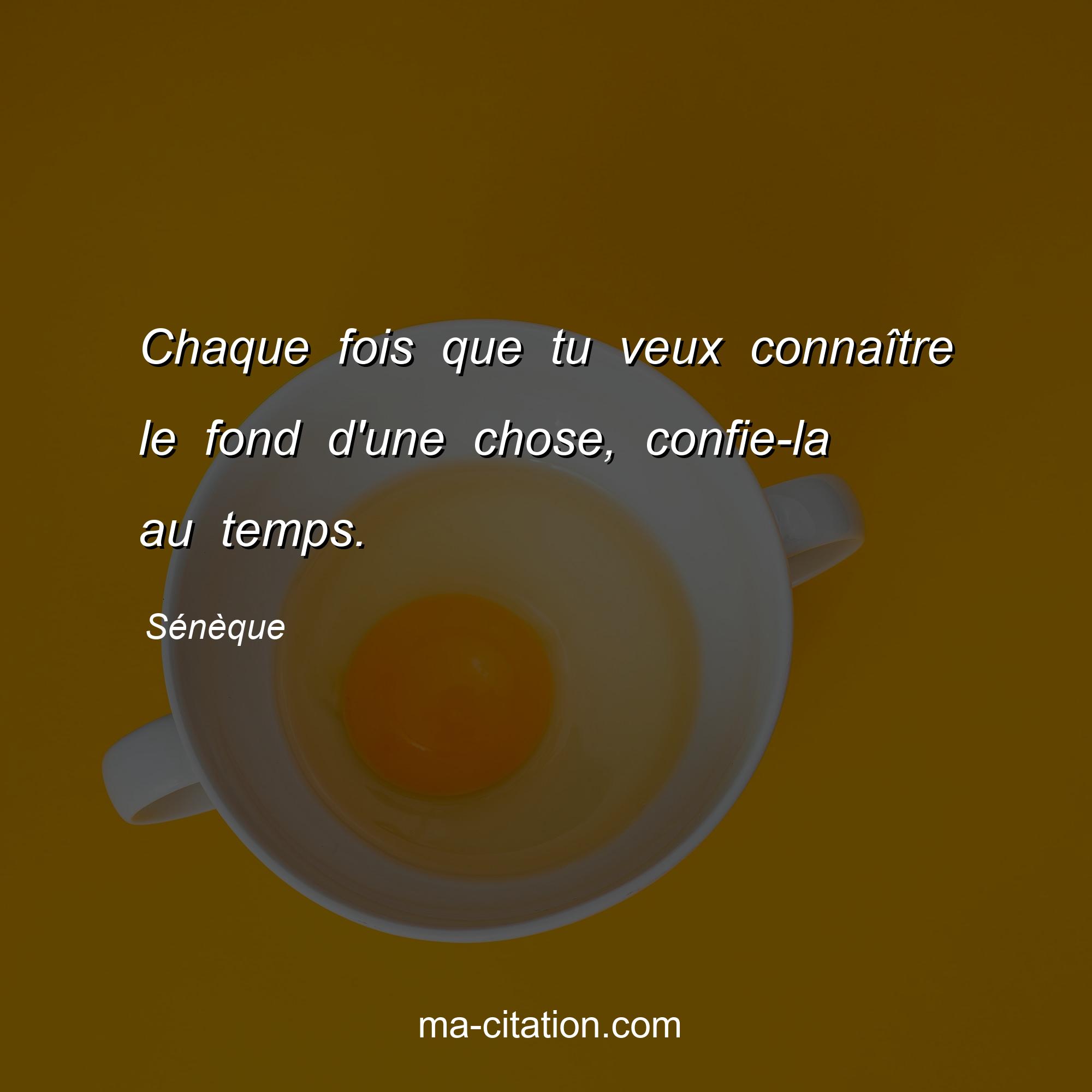 Citation sur la vie de Sénèque :Chaque fois que tu veux connaître le fond d'une chose, confie-la au temps.