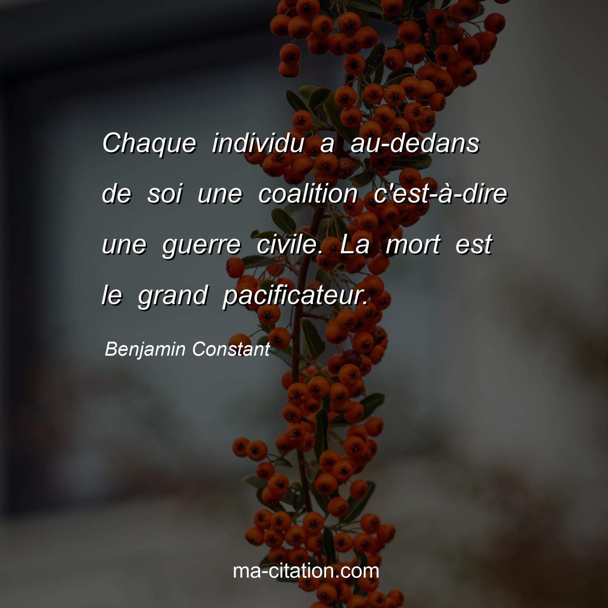 Citation sur la vie de Benjamin Constant :Chaque individu a au-dedans de soi une coalition c'est-Ã -dire une guerre civile. La mort est le grand pacificateur.