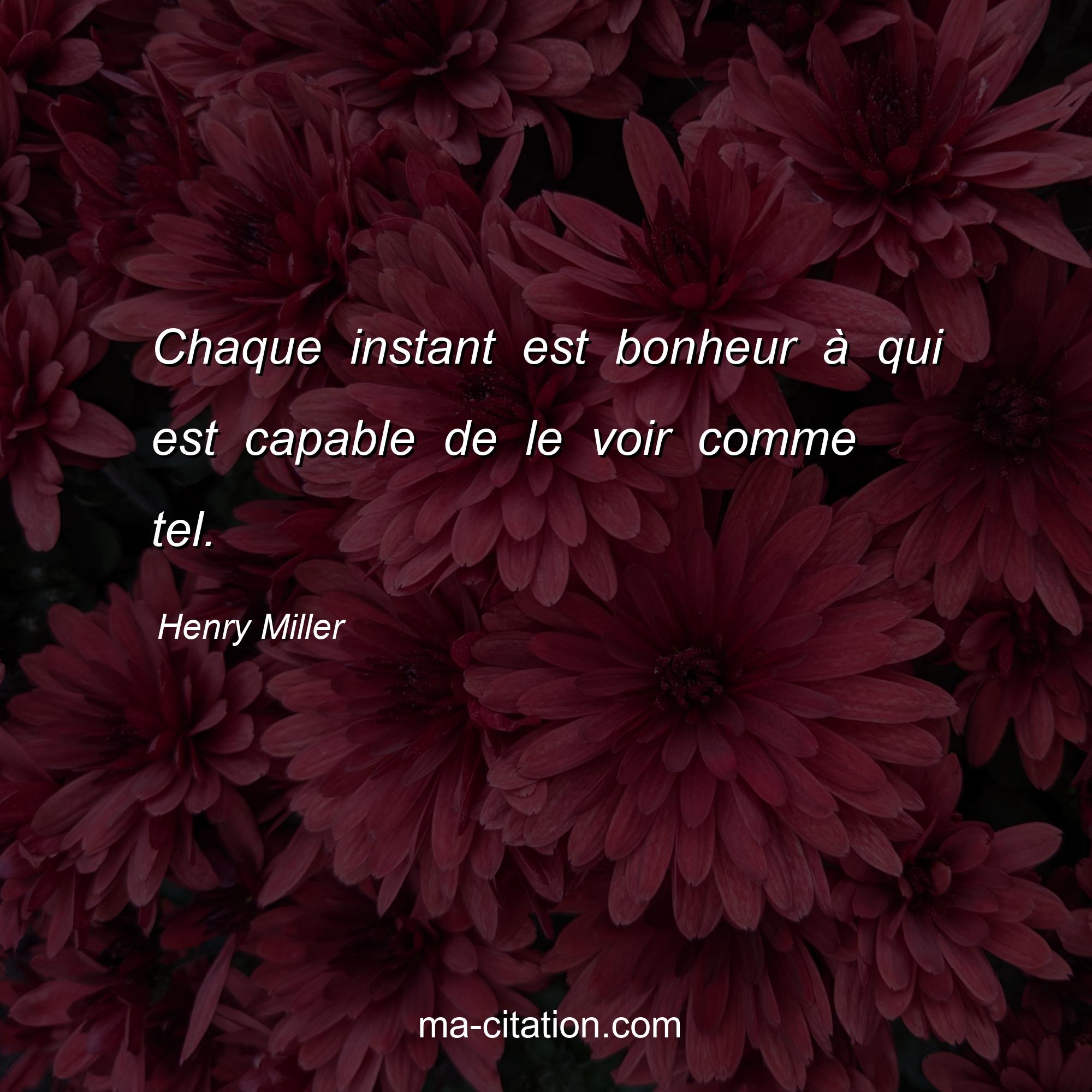 Henry Miller est l'auteur de la citation sur la vie "Chaque instant est bonheur à qui est capable de le voir comme tel.".