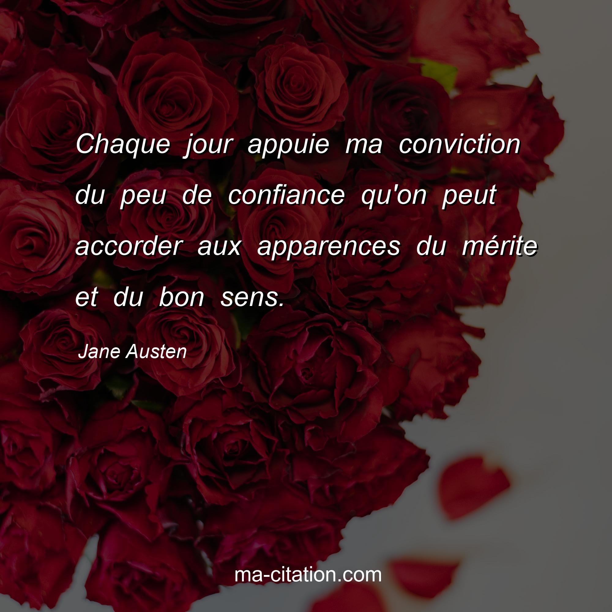 Citation sur la vie de Jane Austen :Chaque jour appuie ma conviction du peu de confiance qu'on peut accorder aux apparences du mérite et du bon sens.