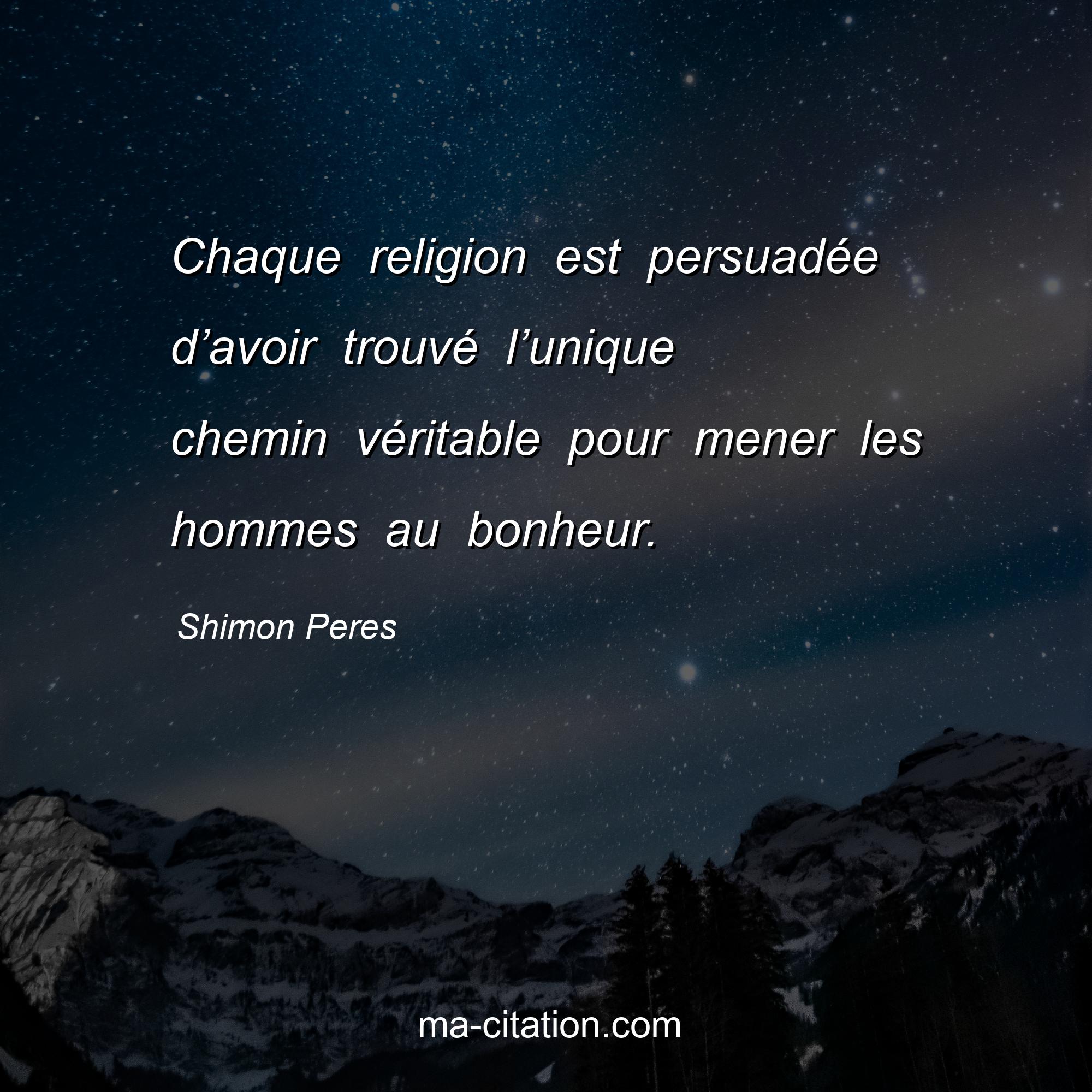Citation sur la vie de Shimon Peres :Chaque religion est persuadée d’avoir trouvé l’unique chemin véritable pour mener les hommes au bonheur.