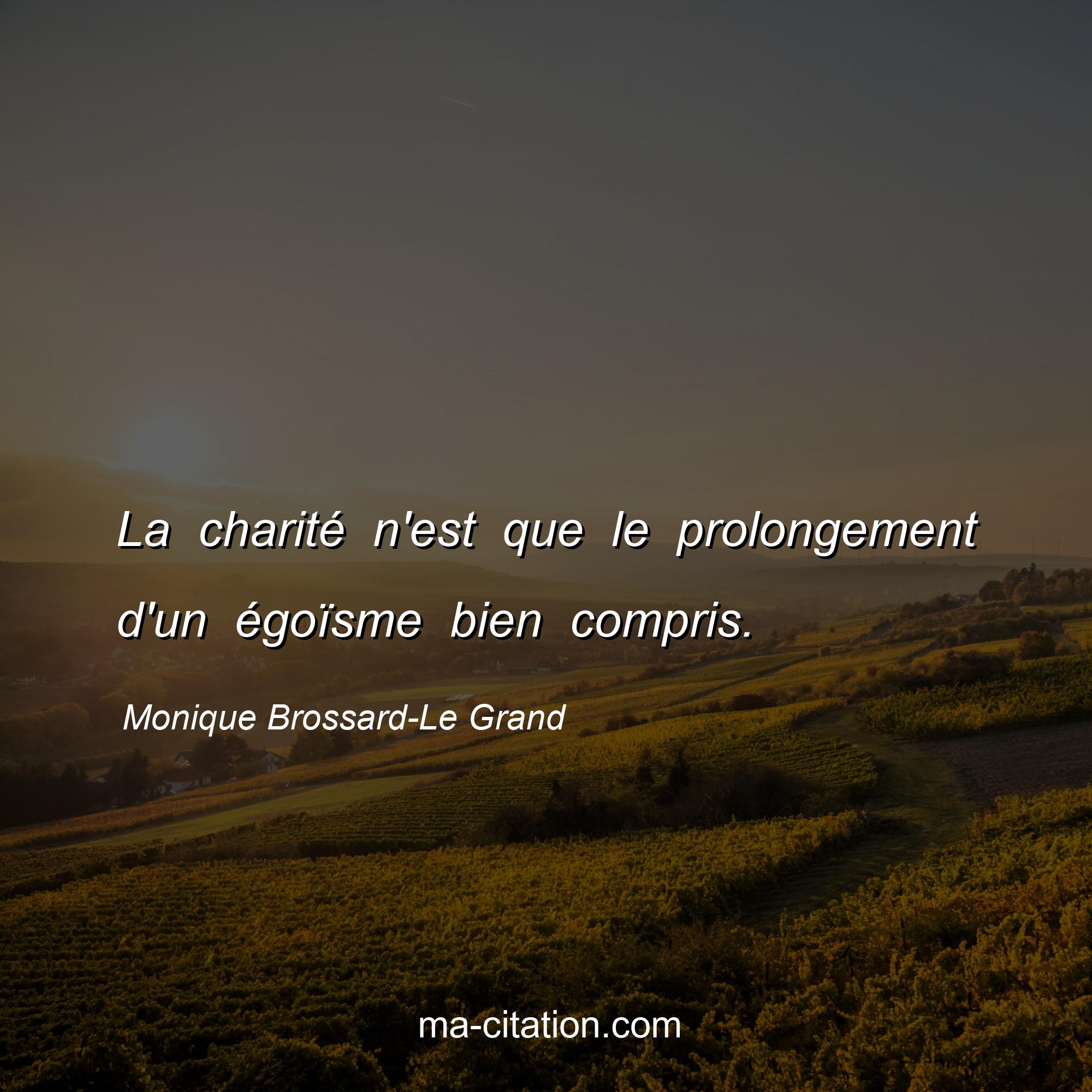Monique Brossard-Le Grand est l'auteur de la citation sur la vie "La charité n'est que le prolongement d'un égoïsme bien compris.".