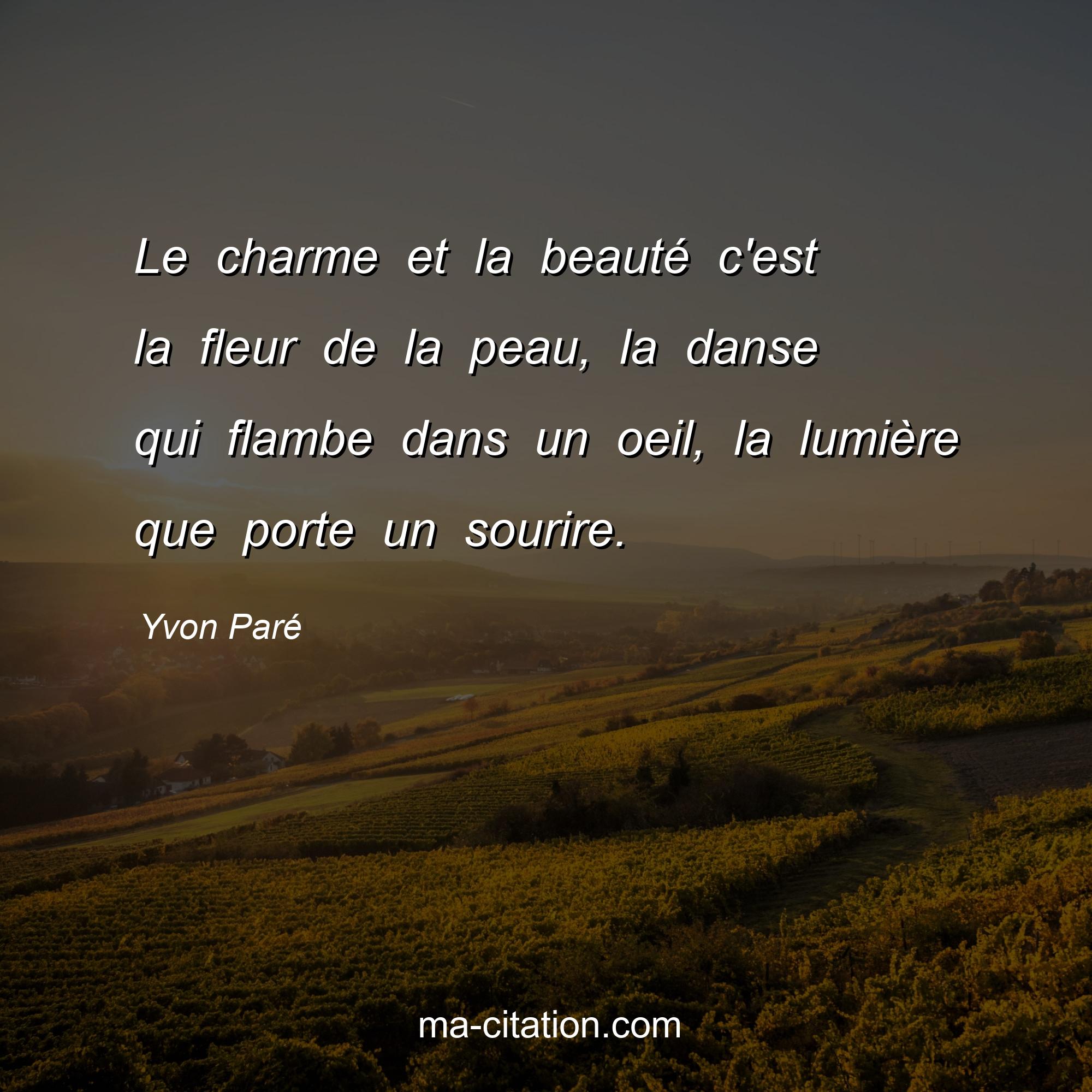 Yvon Paré est l'auteur de la citation sur la vie "Le charme et la beauté c'est la fleur de la peau, la danse qui flambe dans un oeil, la lumière que porte un sourire.".
