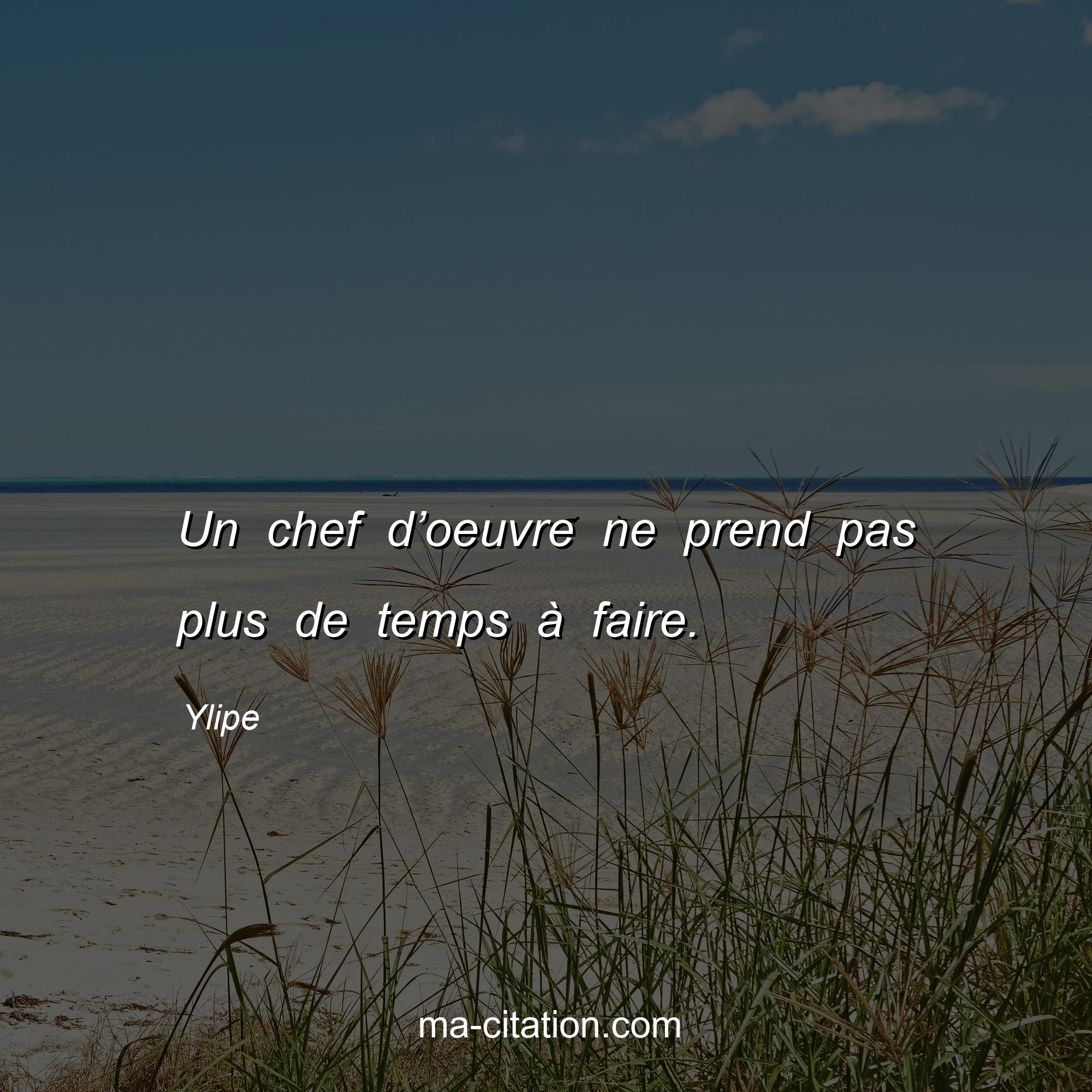 Citation sur la vie de Ylipe :Un chef d’oeuvre ne prend pas plus de temps à faire.