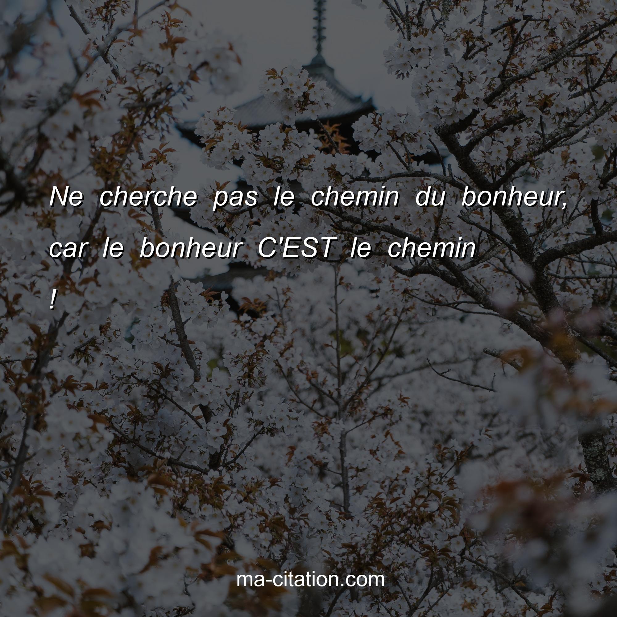 Citation sur la vie :Ne cherche pas le chemin du bonheur, car le bonheur C'EST le chemin !