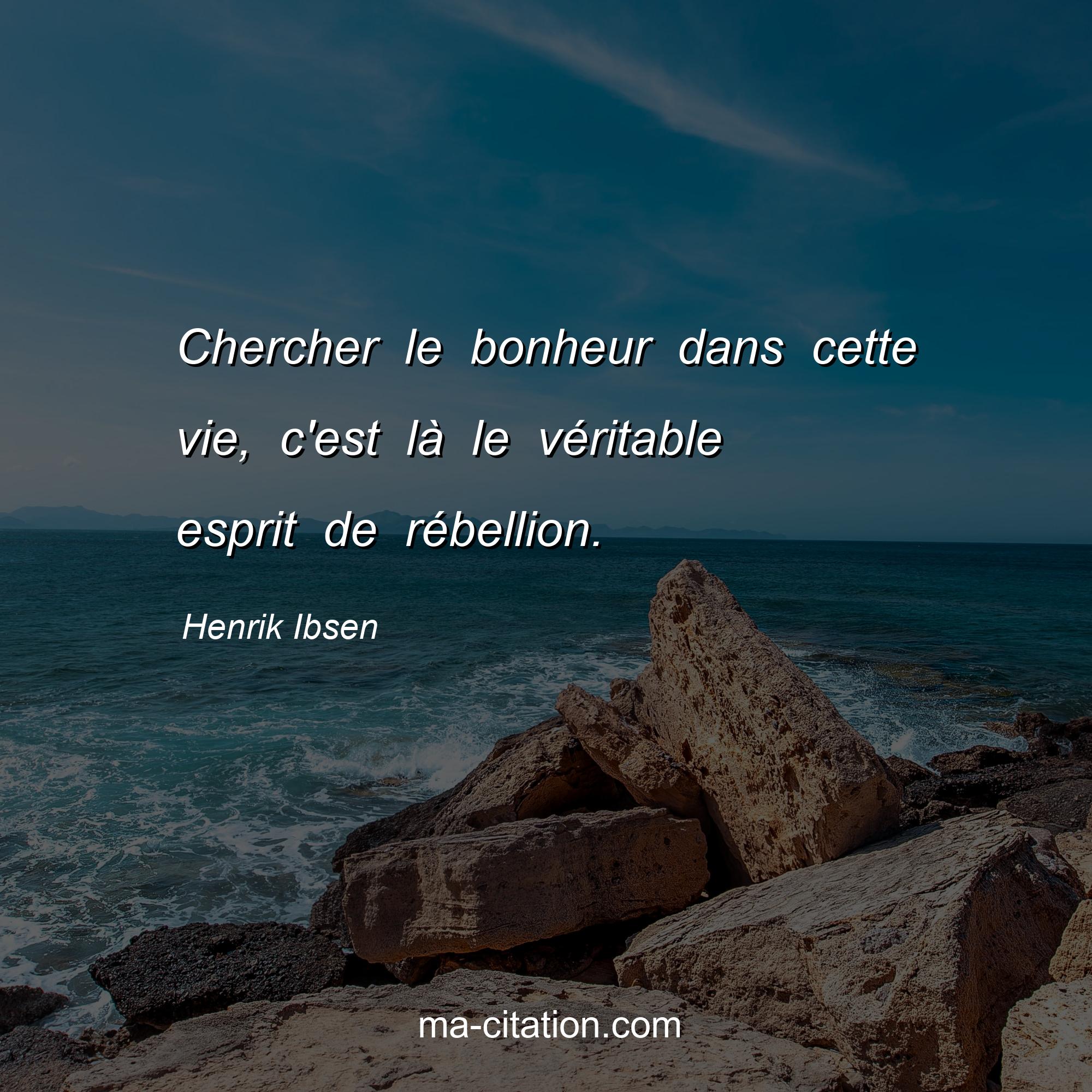Citation sur la vie de Henrik Ibsen :Chercher le bonheur dans cette vie, c'est là le véritable esprit de rébellion.