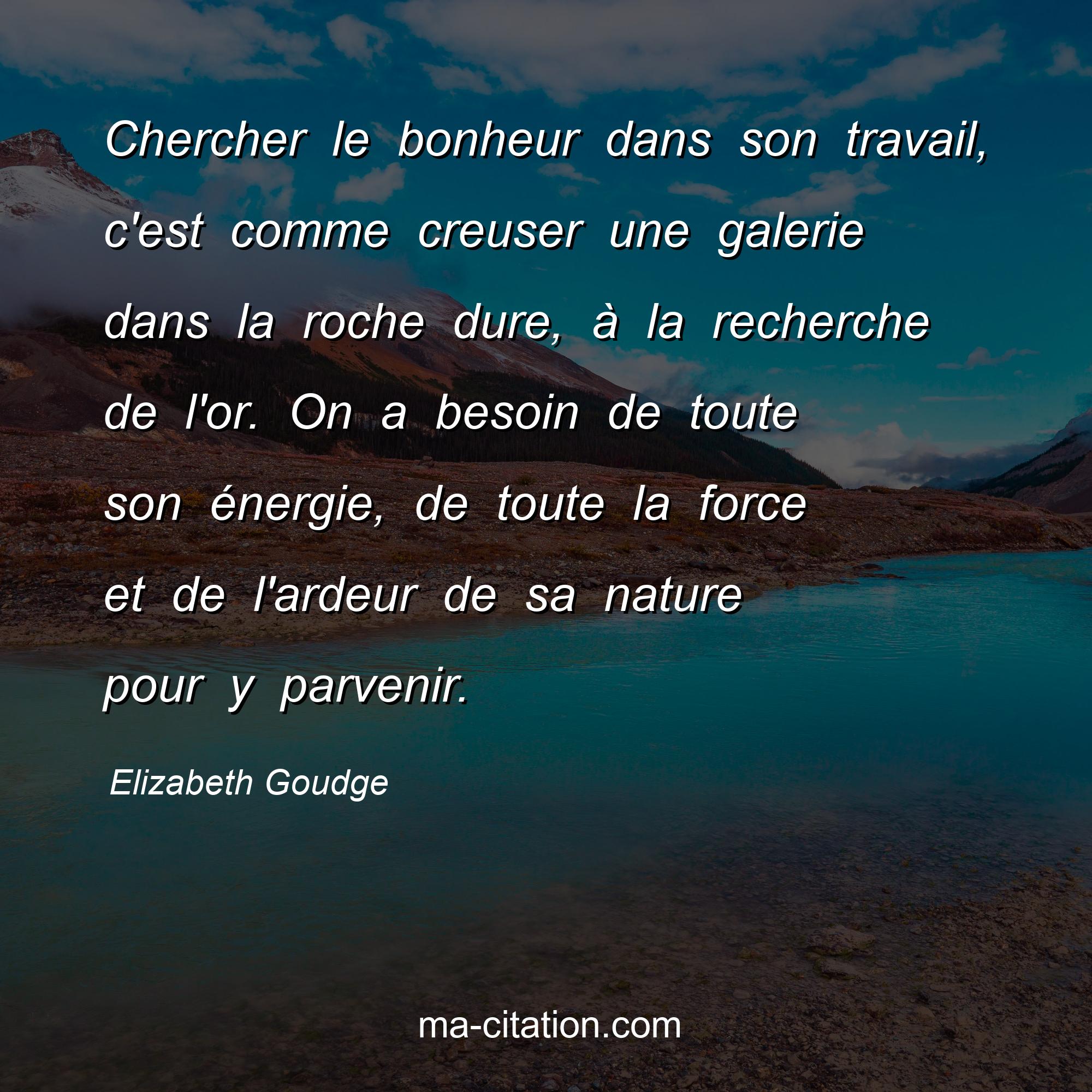 Citation sur la vie d'Elizabeth Goudge :Chercher le bonheur dans son travail, c'est comme creuser une galerie dans la roche dure, à la recherche de l'or. On a besoin de toute son énergie, de toute la force et de l'ardeur de sa nature pour y parvenir.