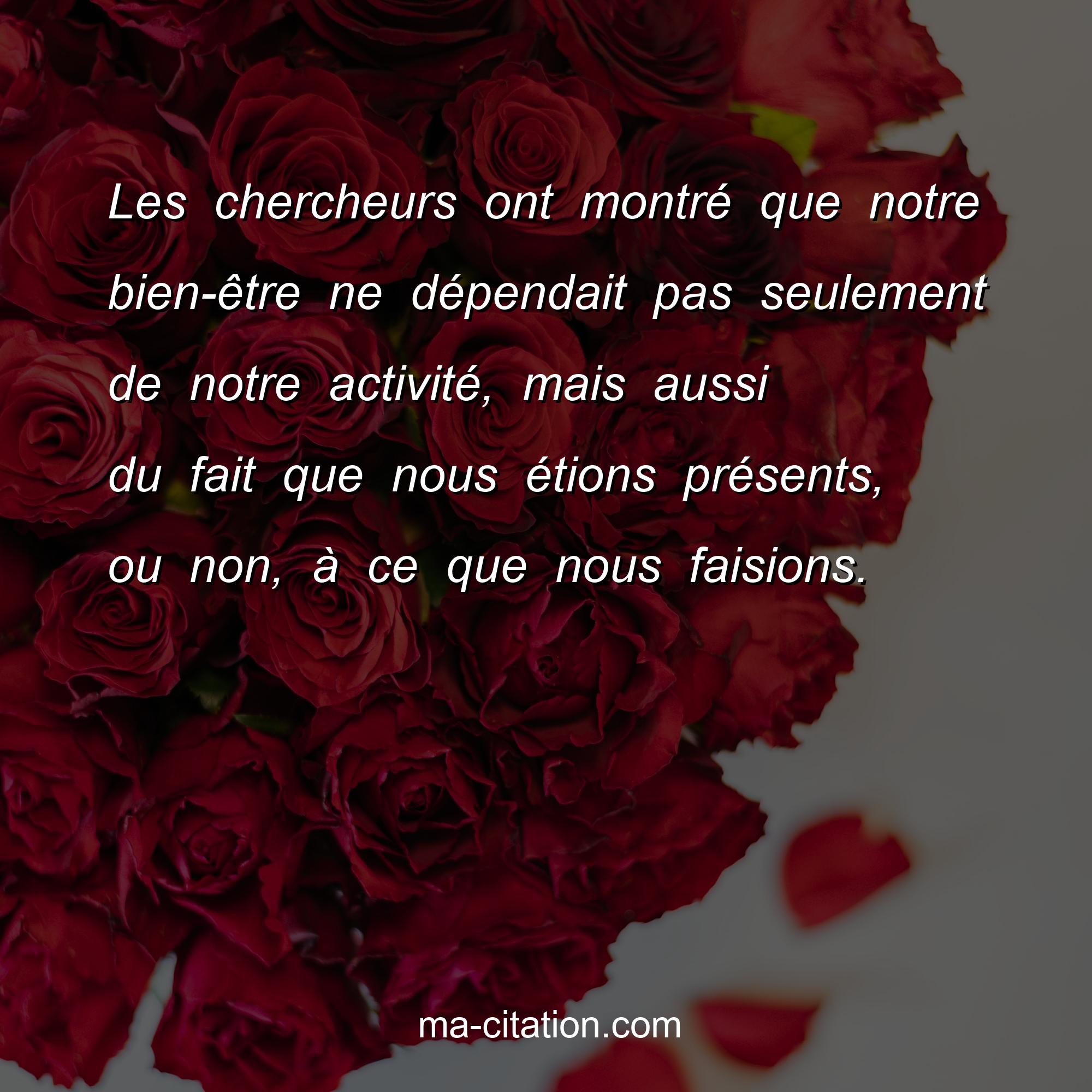 Citation sur la vie :Les chercheurs ont montré que notre bien-être ne dépendait pas seulement de notre activité, mais aussi du fait que nous étions présents, ou non, à ce que nous faisions.
