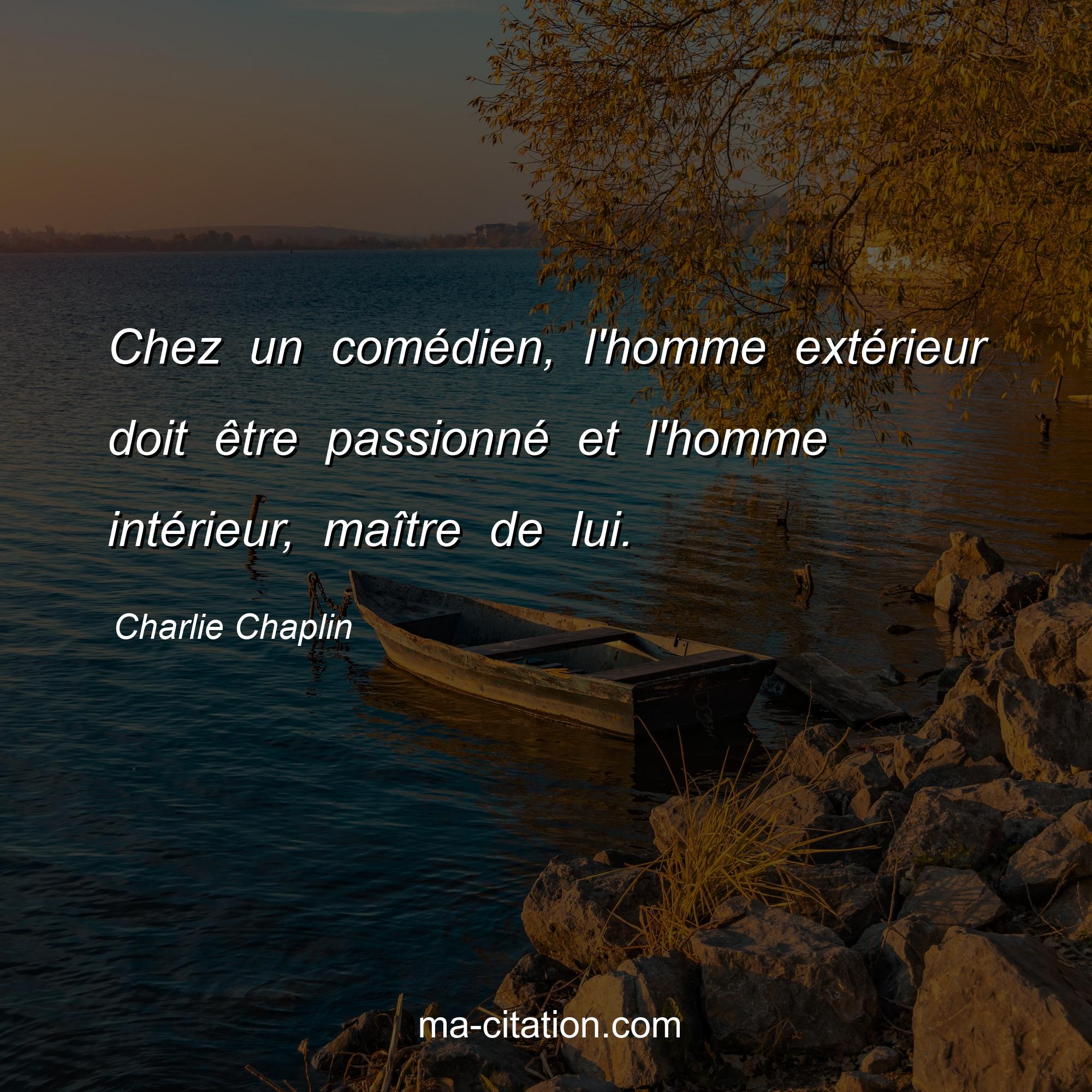 Citation sur la vie de Charlie Chaplin :Chez un comédien, l'homme extérieur doit être passionné et l'homme intérieur, maître de lui.