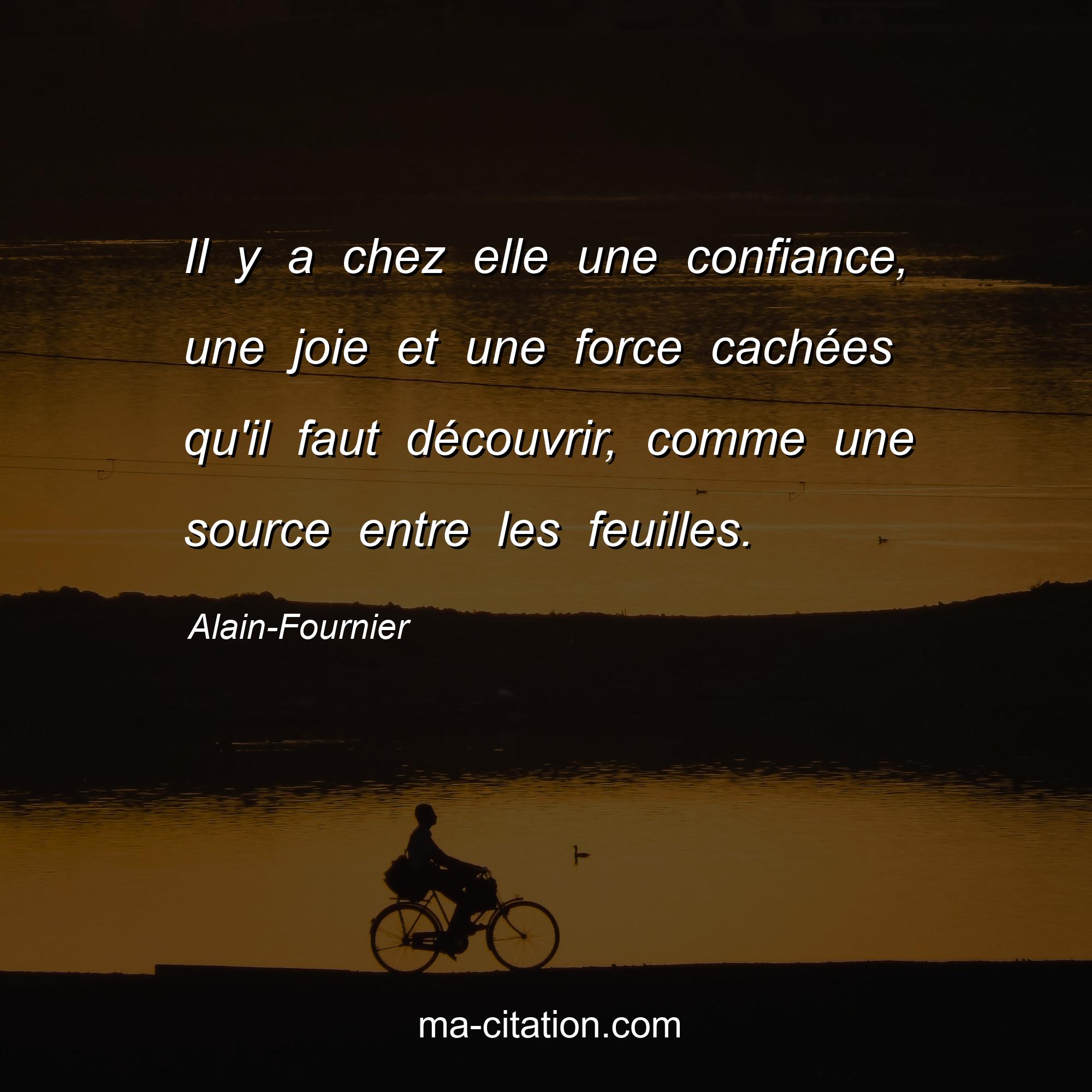 Citation sur la vie d'Alain-Fournier :Il y a chez elle une confiance, une joie et une force cachées qu'il faut découvrir, comme une source entre les feuilles.