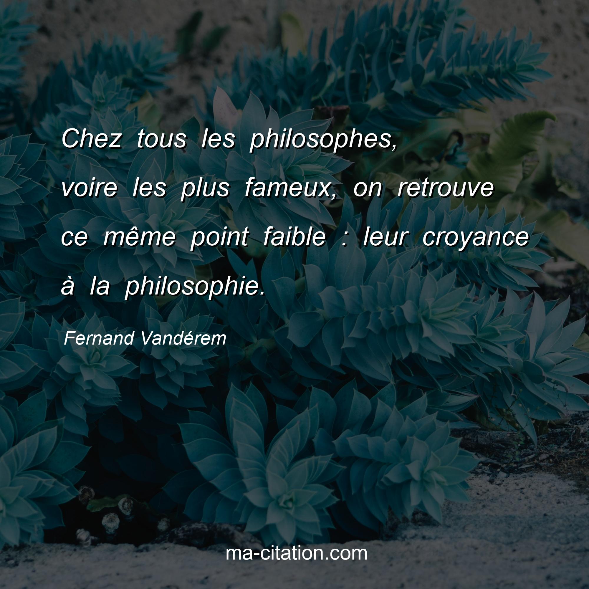 Citation sur la vie de Fernand Vandérem :Chez tous les philosophes, voire les plus fameux, on retrouve ce même point faible : leur croyance à la philosophie.