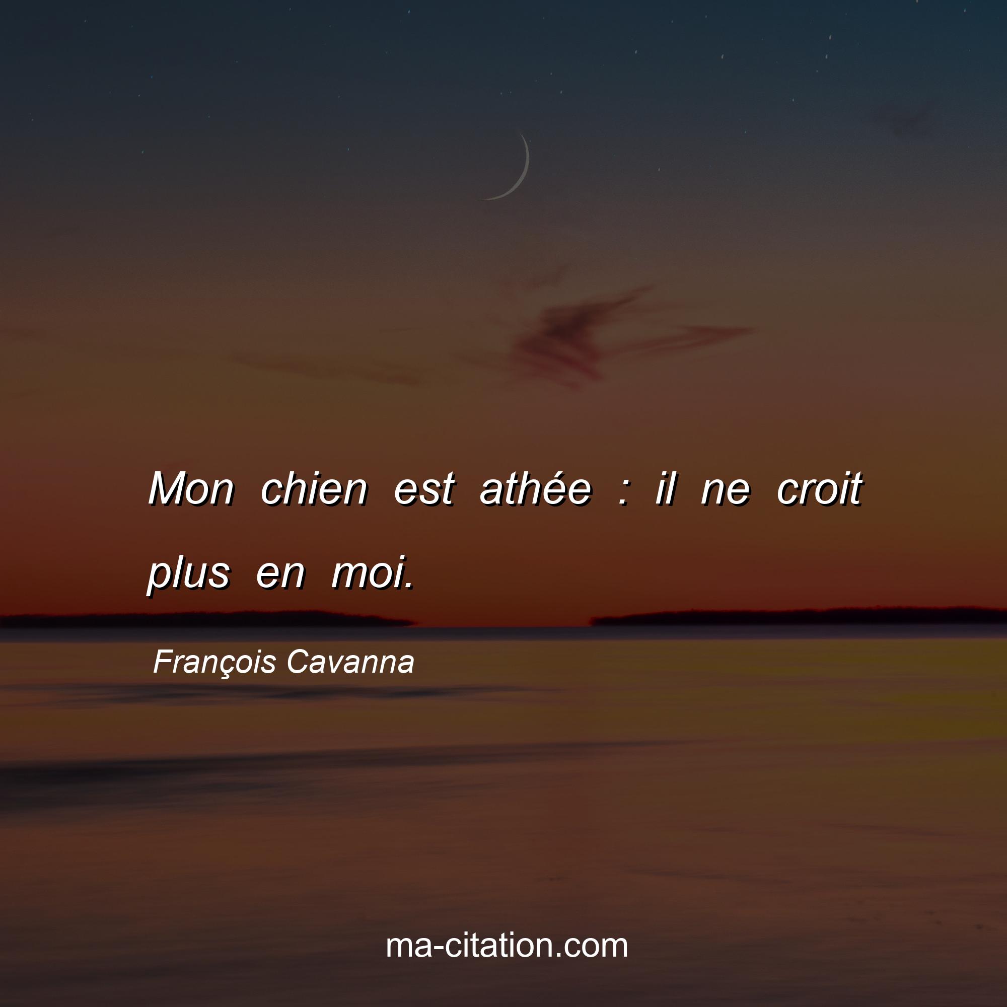 Citation sur la vie de François Cavanna :Mon chien est athée : il ne croit plus en moi.
