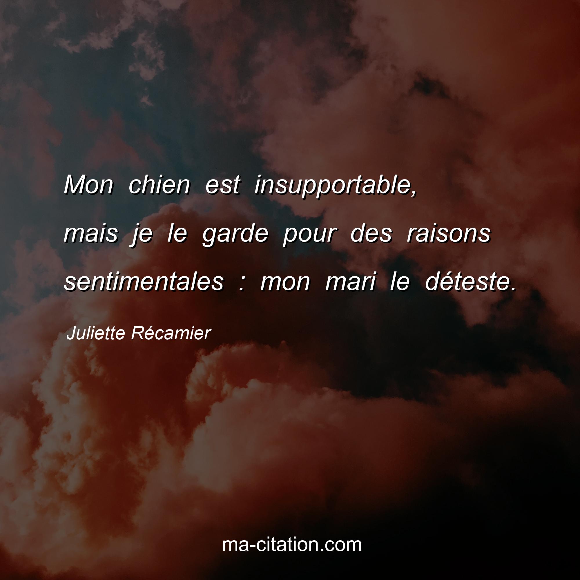 Juliette Récamier est l'auteur de la citation sur la vie "Mon chien est insupportable, mais je le garde pour des raisons sentimentales : mon mari le déteste.".