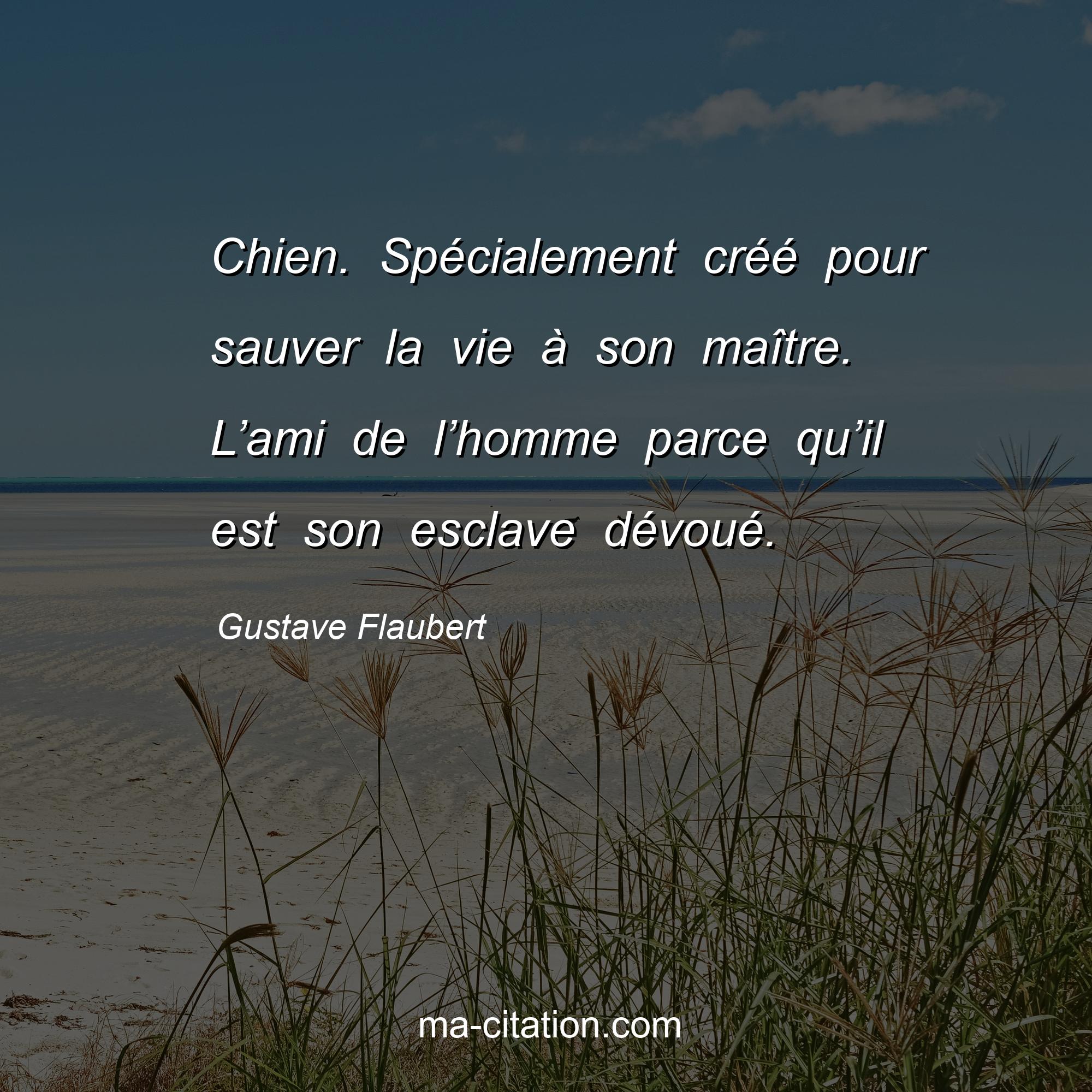 Citation sur la vie de Gustave Flaubert :Chien. Spécialement créé pour sauver la vie à son maître. L’ami de l’homme parce qu’il est son esclave dévoué.