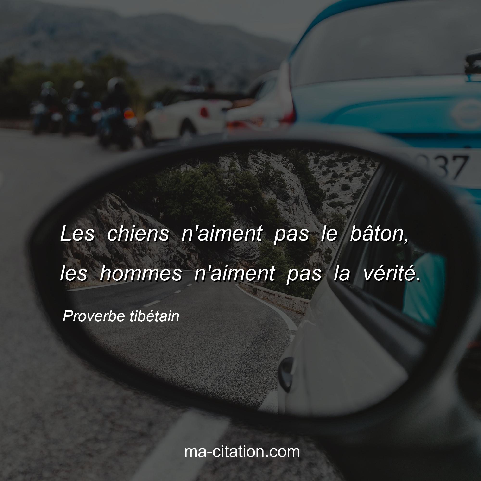 Proverbe tibétain sur la vie :Les chiens n'aiment pas le bâton, les hommes n'aiment pas la vérité.