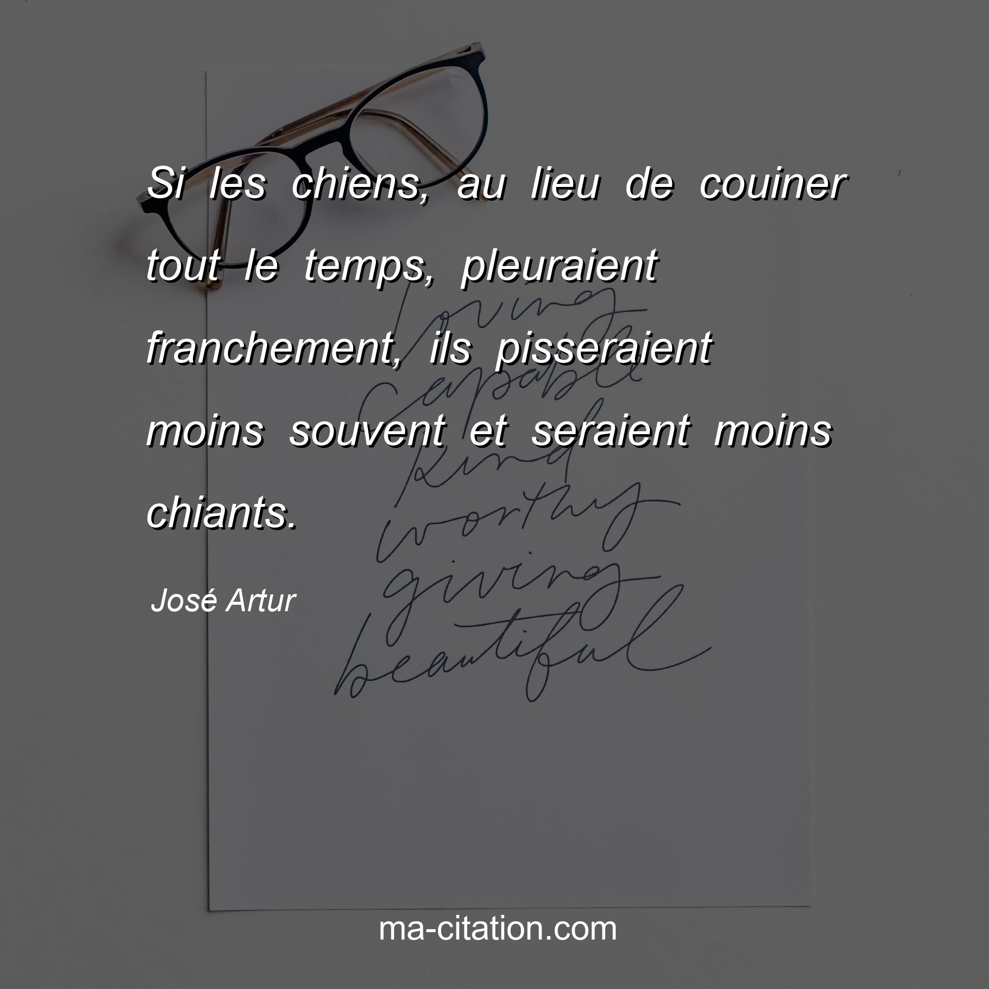 Citation sur la vie de José Artur :Si les chiens, au lieu de couiner tout le temps, pleuraient franchement, ils pisseraient moins souvent et seraient moins chiants.