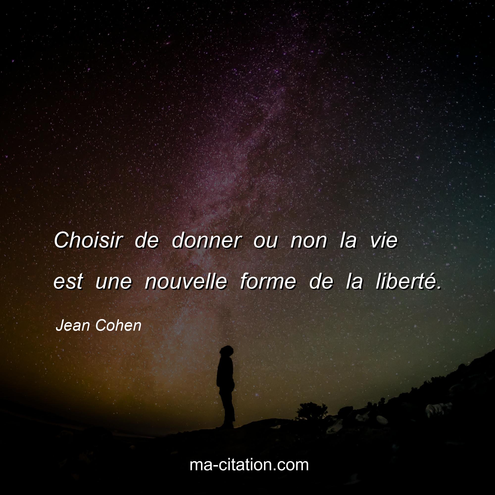 Jean Cohen est l'auteur de la citation sur la vie "Choisir de donner ou non la vie est une nouvelle forme de la liberté.".