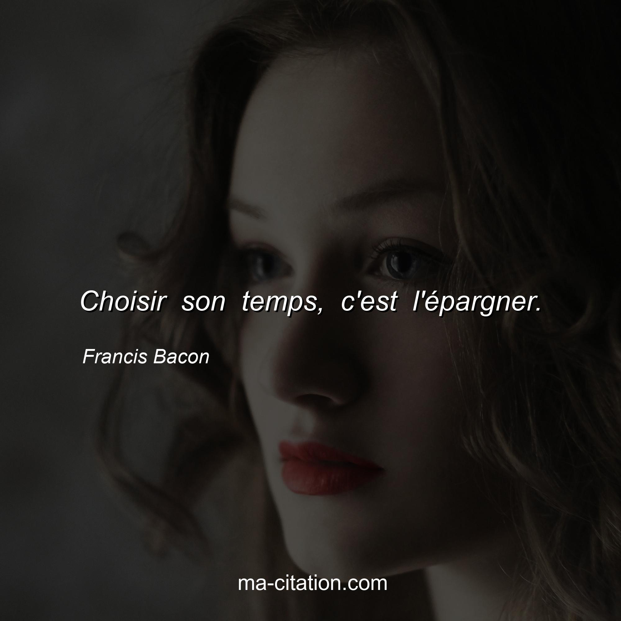 Citation sur la vie de Francis Bacon :Choisir son temps, c'est l'épargner.