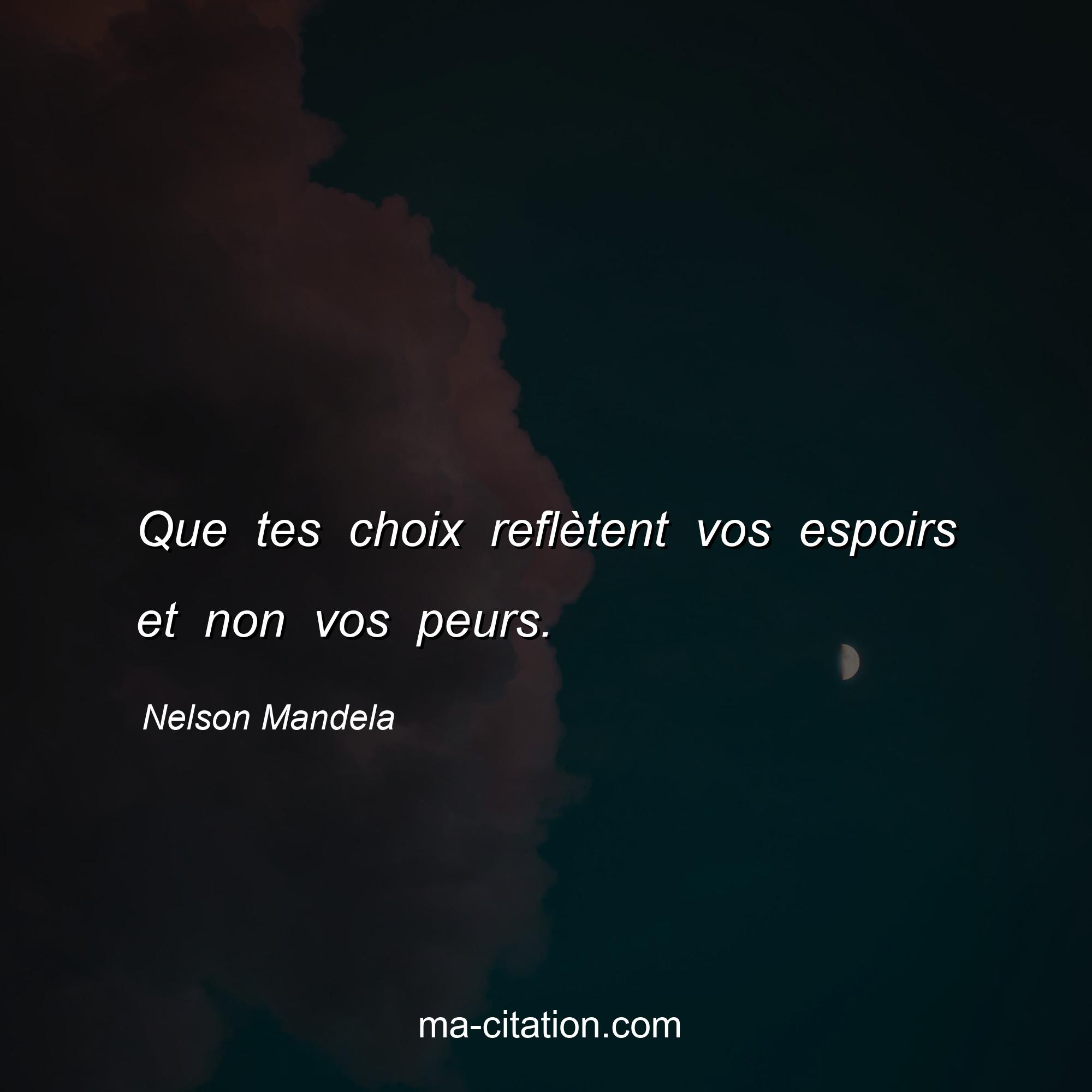 Citation sur la vie de Nelson Mandela :Que tes choix reflètent vos espoirs et non vos peurs.