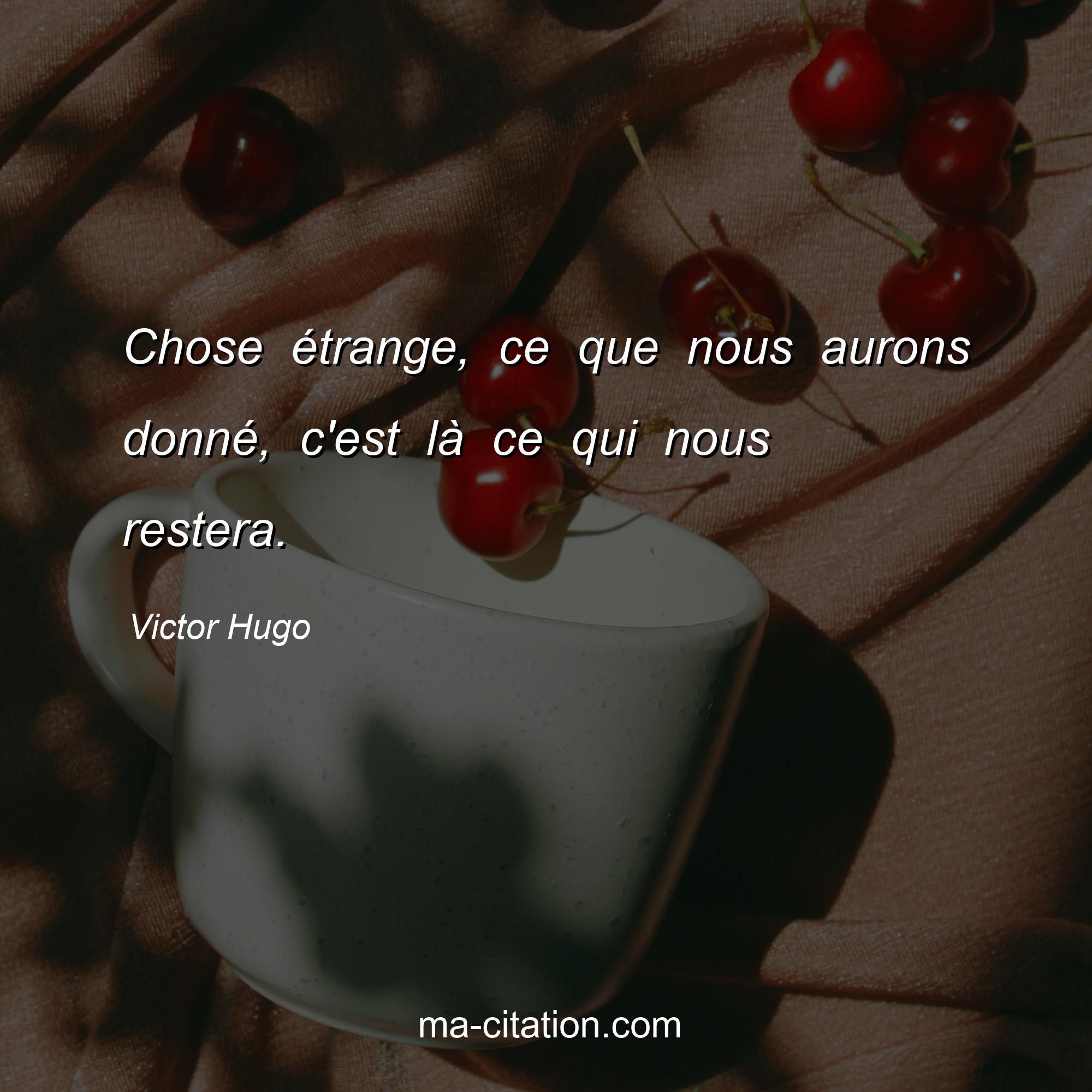 Citation sur la vie de Victor Hugo :Chose étrange, ce que nous aurons donné, c'est là ce qui nous restera.