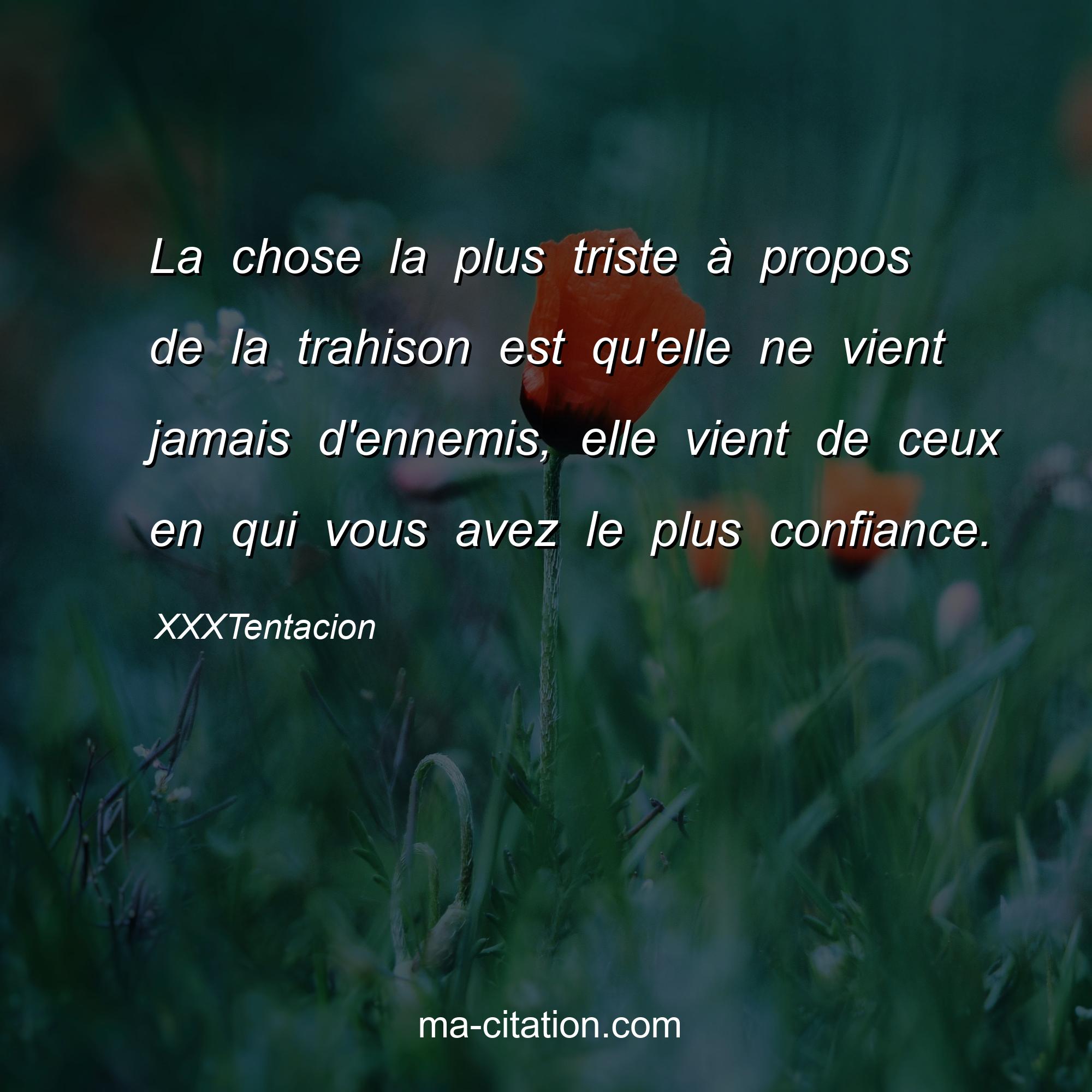 Citation sur la vie de XXXTentacion :La chose la plus triste à propos de la trahison est qu'elle ne vient jamais d'ennemis, elle vient de ceux en qui vous avez le plus confiance.
