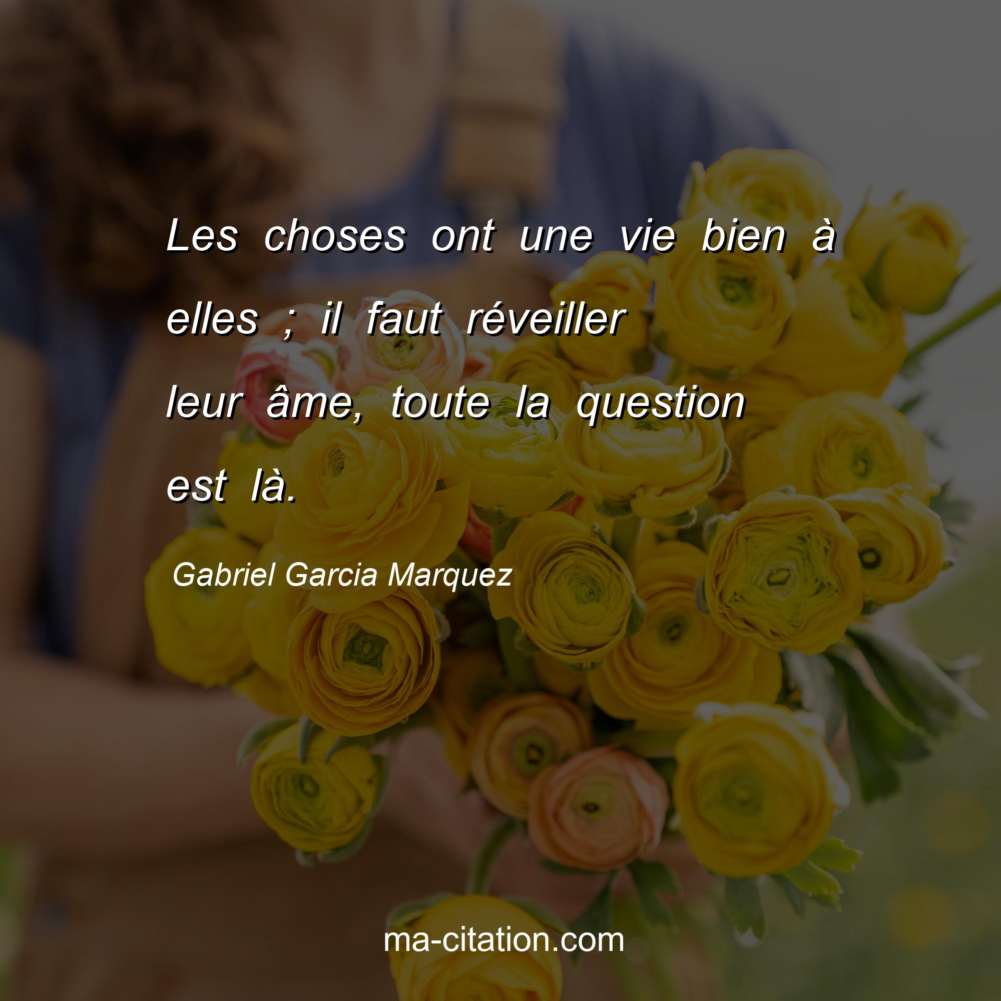 Citation sur la vie de Gabriel Garcia Marquez :Les choses ont une vie bien à elles ; il faut réveiller leur âme, toute la question est là .