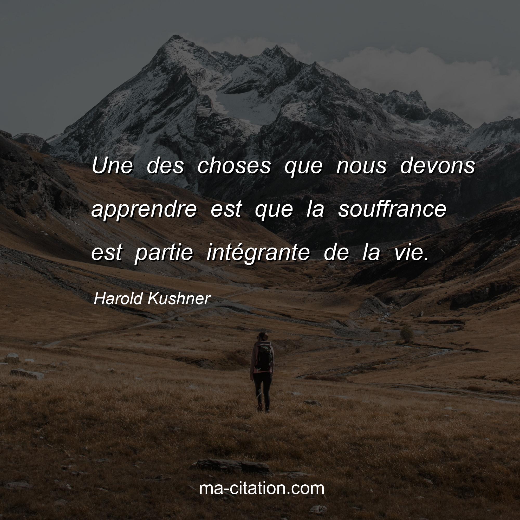 Harold Kushner est l'auteur de la citation sur la vie "Une des choses que nous devons apprendre est que la souffrance est partie intégrante de la vie.".
